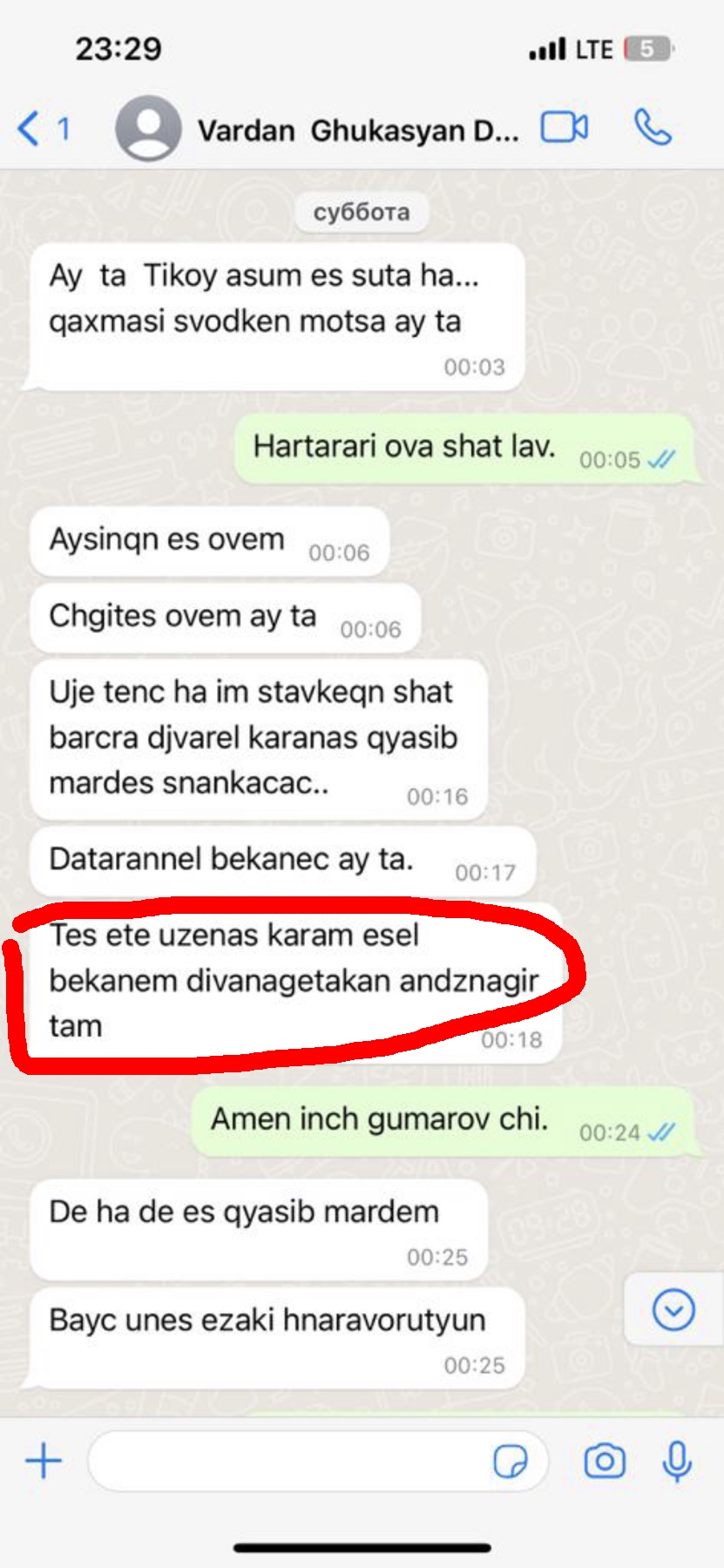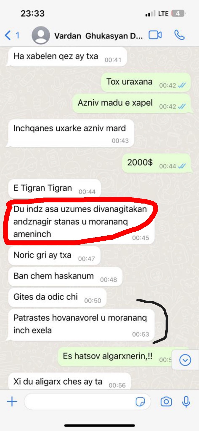 Below are the screenshots of the relevant and important parts of the conversation Vardan Ghukasyan has had with the representative of the night club, as well as T.A. (with their consent), obtained within the framework of the criminal proceeding.