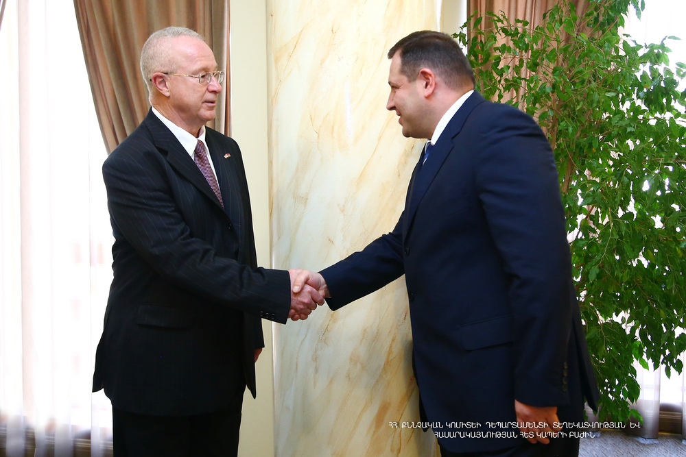 The Chairman of the RA Investigative Committee Hayk Grigoryan received today the officer of military cooperation of the U.S. Embassy in Armenia Donald Harper and military experts who have arrived in Armenia from the U.S.A.