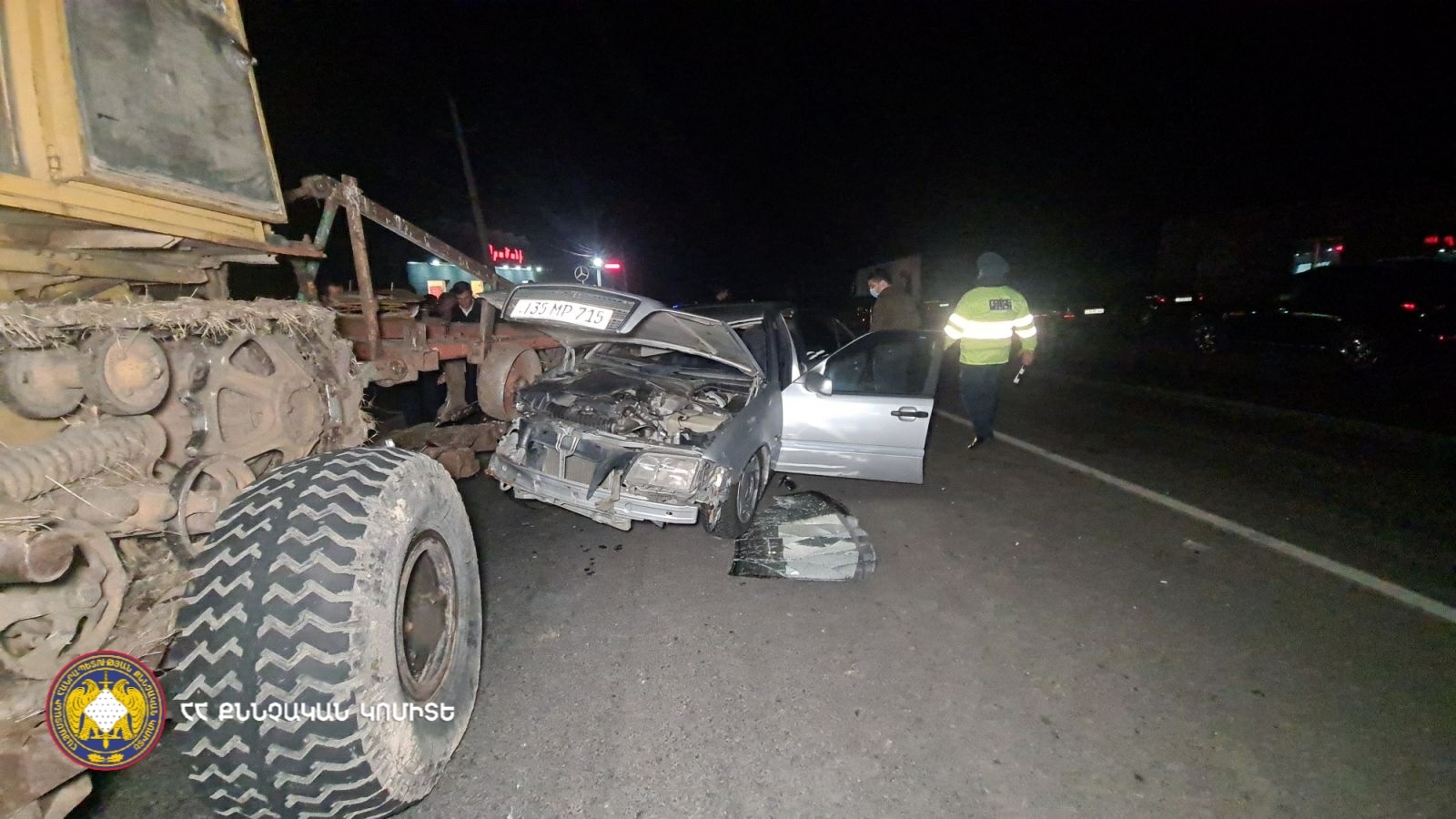 Ըստ նախնական տվյալների՝ Ապարան քաղաքի բնակիչն իր վարած «Մերսեդես» մակնիշի ավտոմեքենայով բախվել է համընթաց ընթացող «Յումզ» մակնիշի տրակտորի կցորդիչին բեռնված «ԴՏ» մակնիշի թրթուրավոր տրակտորի գութանին, ինչի հետևանքով նշված ավտոմեքենայի 25-ամյա ուղևորուհին և վերջինիս երեխան՝ ծնված 16.11.2019թ., ստացած մարմնական վնասվածքներից մահացել են հիվանդանոց տեղափոխվելու ճանապարհին: