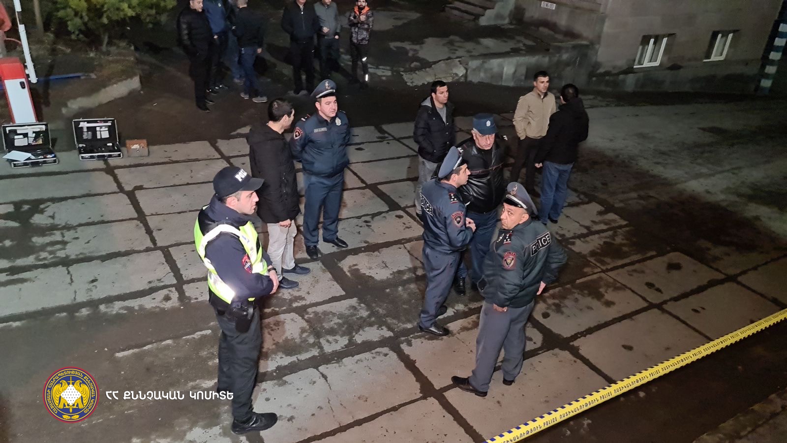 Կատարվել է դեպքի վայրի զննություն, հայտնաբերվել են արնանման հետքեր, մեկ հատ մետաղյա պնդօղակ՝ իր մետաղյա ելուստով, ինչպես նաև ընկերության տարածքից դուրս մոտ 50 սմ տրամագծով պայթյունի կոնաձև օջախ: Հարցաքննվել են ընկերության մի խումբ աշխատակիցներ: