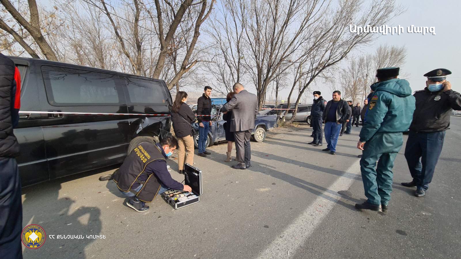 ՀՀ քննչական կոմիտեի Արմավիրի մարզային քննչական վարչությունում ՀՀ քրեական օրենսգրքի 242-րդ հոդվածի 2-րդ մասով հարուցվել է քրեական գործ, որի շրջանակներում ձեռնարկվում են համապատասխան միջոցառումներ՝ պարզելու Երևան-Էջմիածին ավտոճանապարհի 14-րդ կմ հատվածում տեղի ունեցած մահվան ելքով ավտովթարի հանգամանքները: