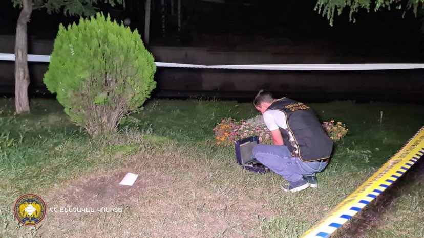 Դեպքի վայրի զննությամբ հայտնաբերվել և վերցվել են պայթուցիկ նռնակի նմանվող մետաղյա բեկորներ, նռնակի բռնակ և պայթյունի հատվածից հողային զանգված: