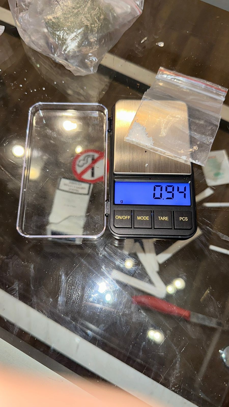 При личном обыске мужчины были обнаружены 6 пакетов с массой, похожей на “метамфетамин” и “марихуану”.