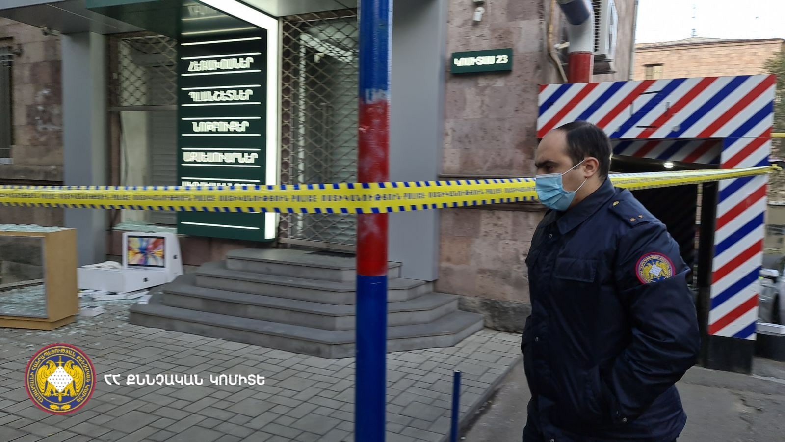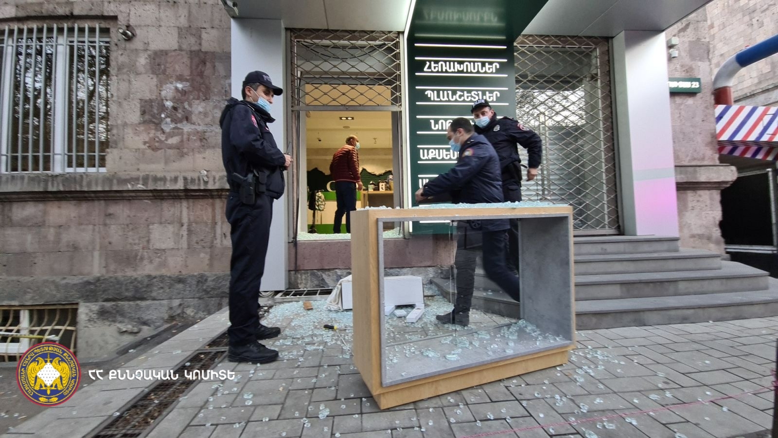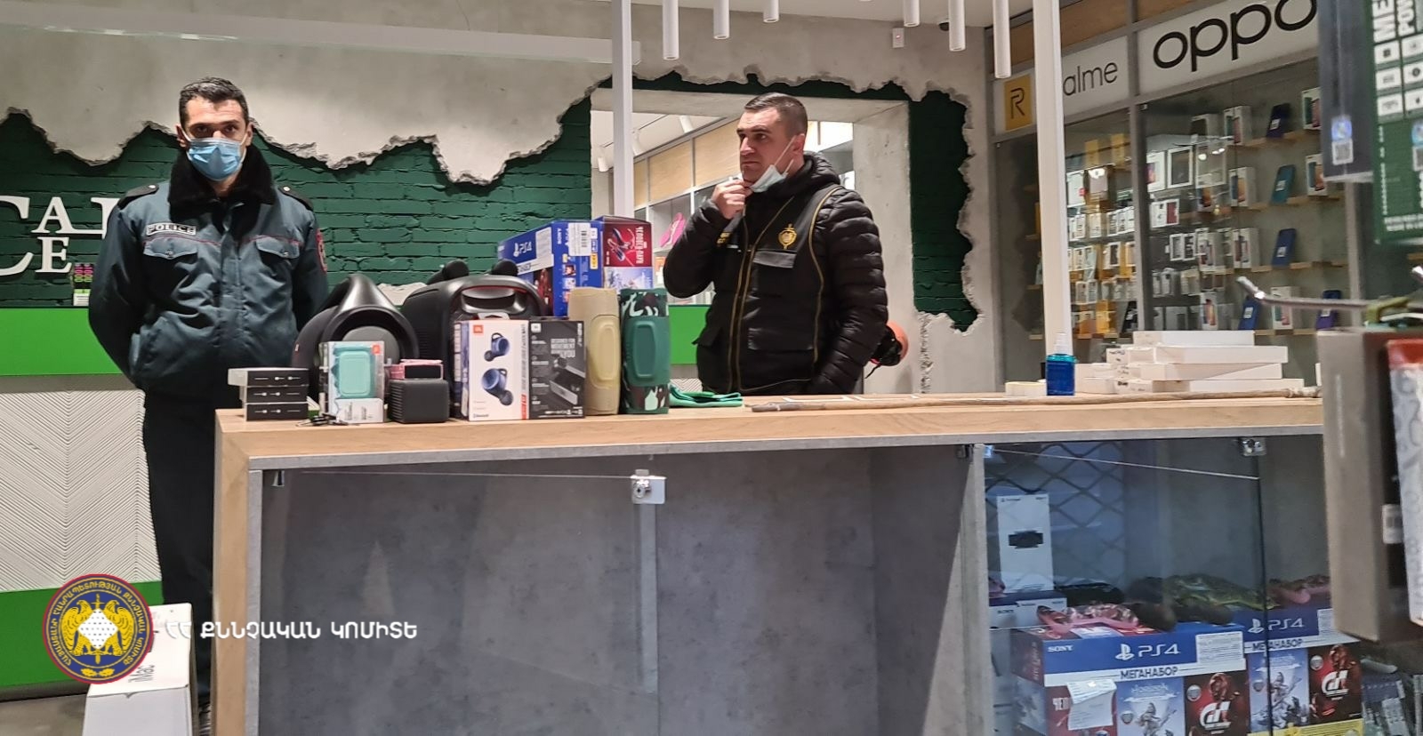 28-го октября 2021г., в период времени с 05:30 по 06:30 часов, группа лиц, с умыслом совершения тайного хищения чужого имущества, взломав стекло с применением технических средств, затем, открыв решетку, незаконно проникла в действующий на улице Комитаса магазин, откуда похитили разные мобильные телефоны, планшеты, портативные компьютеры, часы, наушники, а также деньги из кассы и скрылись. Полицейские, осуществляющие службу в том же месте, заметили последних, и в ходе побега один из них был пойман и подвергнут приводу. В результате предпринятых мер установлена личность последнего, который является жителем г. Еревана, 1990 года рождения.