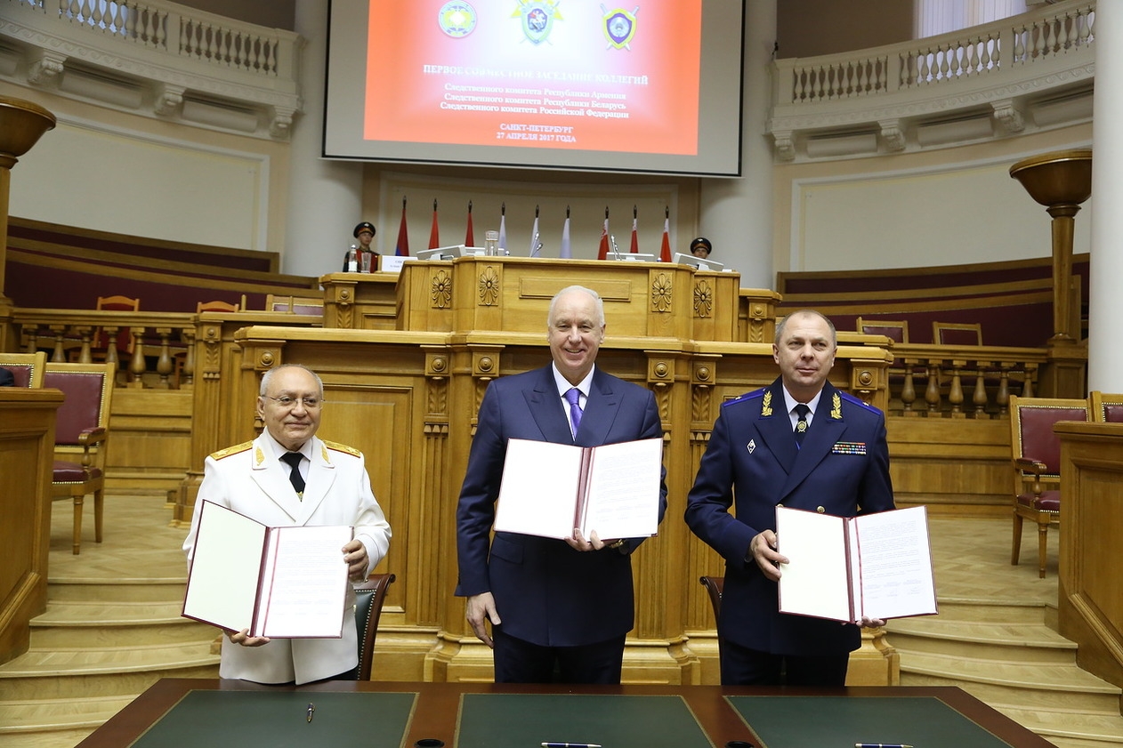 В Санкт-Петербурге стартовало первое заседание совместной коллегии Следственных комитетов Республики Армения, Республики Беларусь и Российской Федерации, в котором принимают участие председатели СК вышеупомянутых трех стран - Агван Овсепян, Иван Носкевич, Александр Бастрыкин.