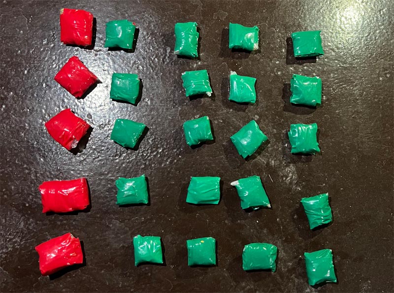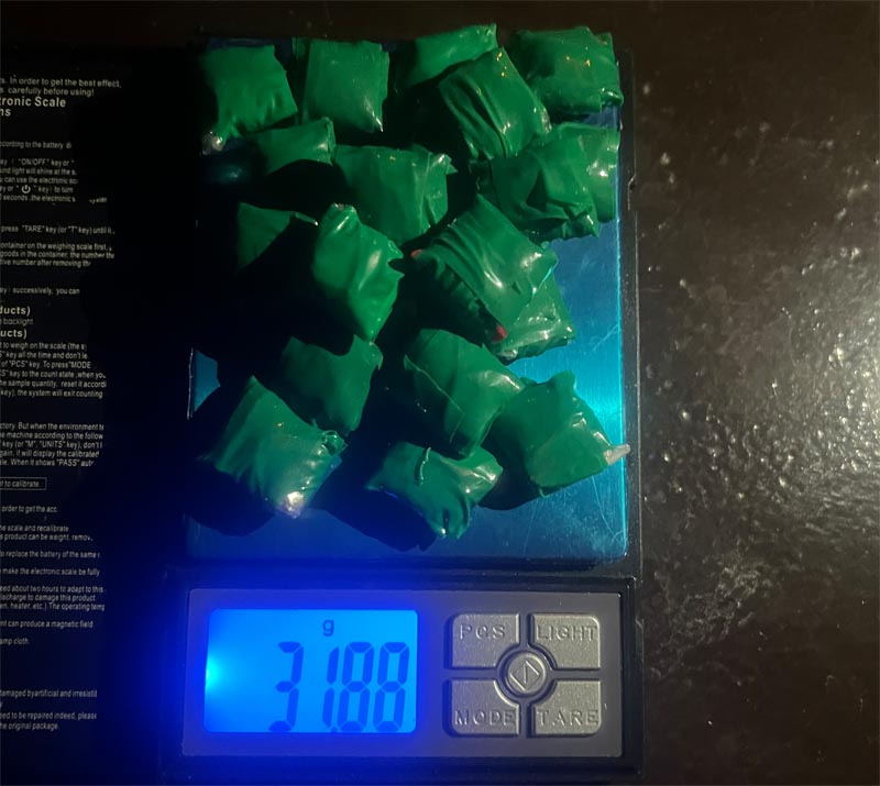 «Օպել» մակնիշի ավտոմեքենայի խուզարկությամբ հայտնաբերվել և վարույթն իրականացնող մարնի կողմից առգրավվել են թվով 25 փաթեթ առերևույթ թմրանյութին նմանվող, կպչուն ժապավենով փաթաթված փաթեթներ՝ 44,63 գրամ ընդհանուր քաշով թմրանյութին նմանվող զանգվածով: