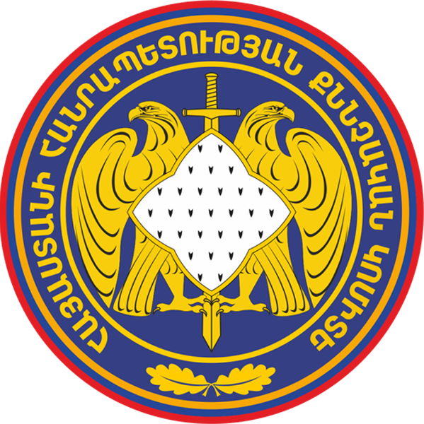 Հաջորդ՝ արտաքին շրջանակաձև շերտում ոսկեգույն հայերեն տառերով գրված է «ՀԱՅԱՍՏԱՆԻ ՀԱՆՐԱՊԵՏՈՒԹՅԱՆ ՔՆՆՉԱԿԱՆ ԿՈՄԻՏԵ»: Ընդհանուր շրջանը երիզում է Հայաստանի Հանրապետության եռագույն դրոշը: