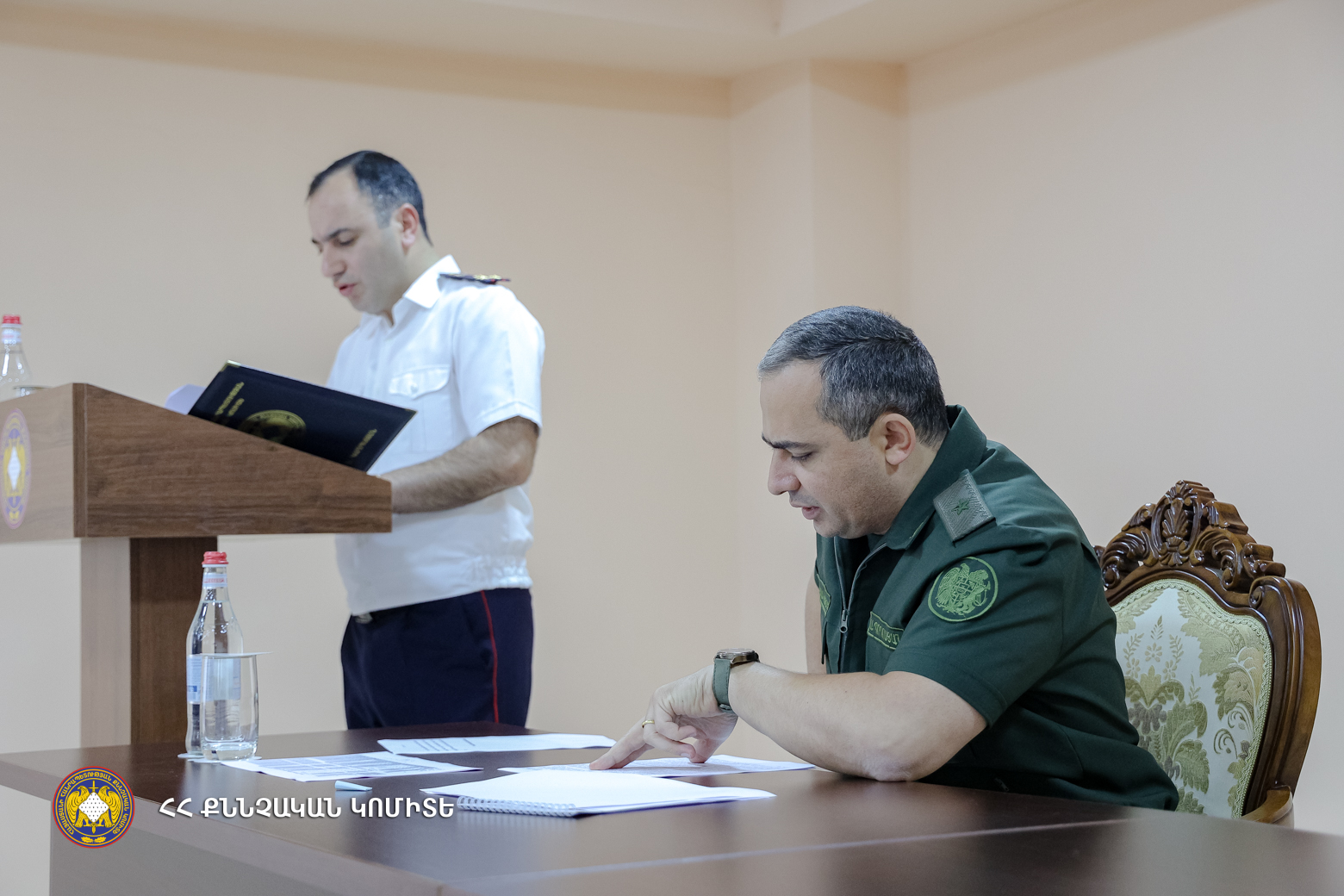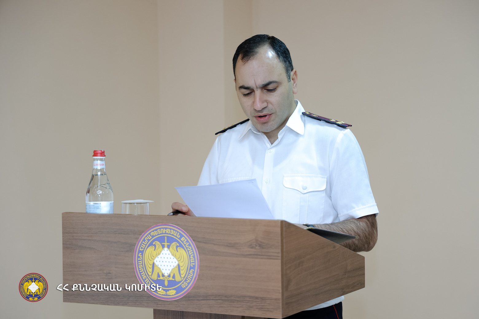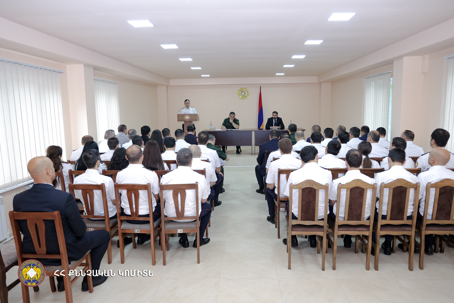 Hovhannes Avetisyan, acting Governor of Lori, Artur Chakhoyan, Deputy Head of General Department for Control over Activity of Territorial Investigative Departments, Gagik Gevorgyan, Deputy Head of General Department on Special Assignments, Edward Karapetyan, Head of Lori Regional Investigative Department, Armen Shahbazyan, Prosecutor of the region, Martiros Avagyan, Head of the Seventh Garrison Investigative Unit, Edward Vermishyan, acting Military Prosecutor of the Lori Garrison, heads of regional structures of the Ministry of Internal Affairs, National Security Service, heads and investigators of the investigative divisions of regional investigative department were present at the meeting.