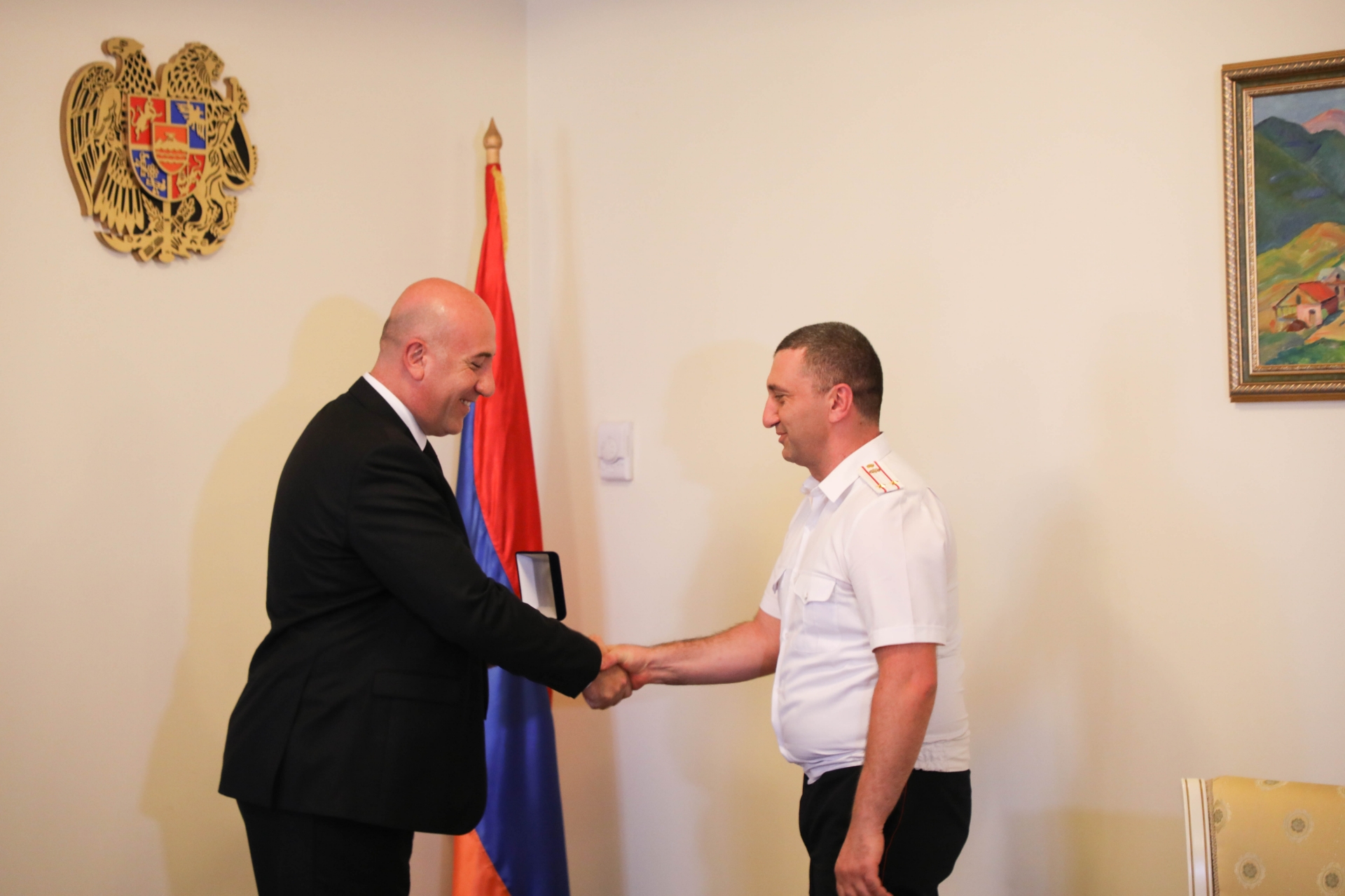 The Chairman of the RA Investigative Committee Hayk Grigoryan received today the First Deputy Chief of the Police Arman Sargsyan and a number of officers of police subdivisions.