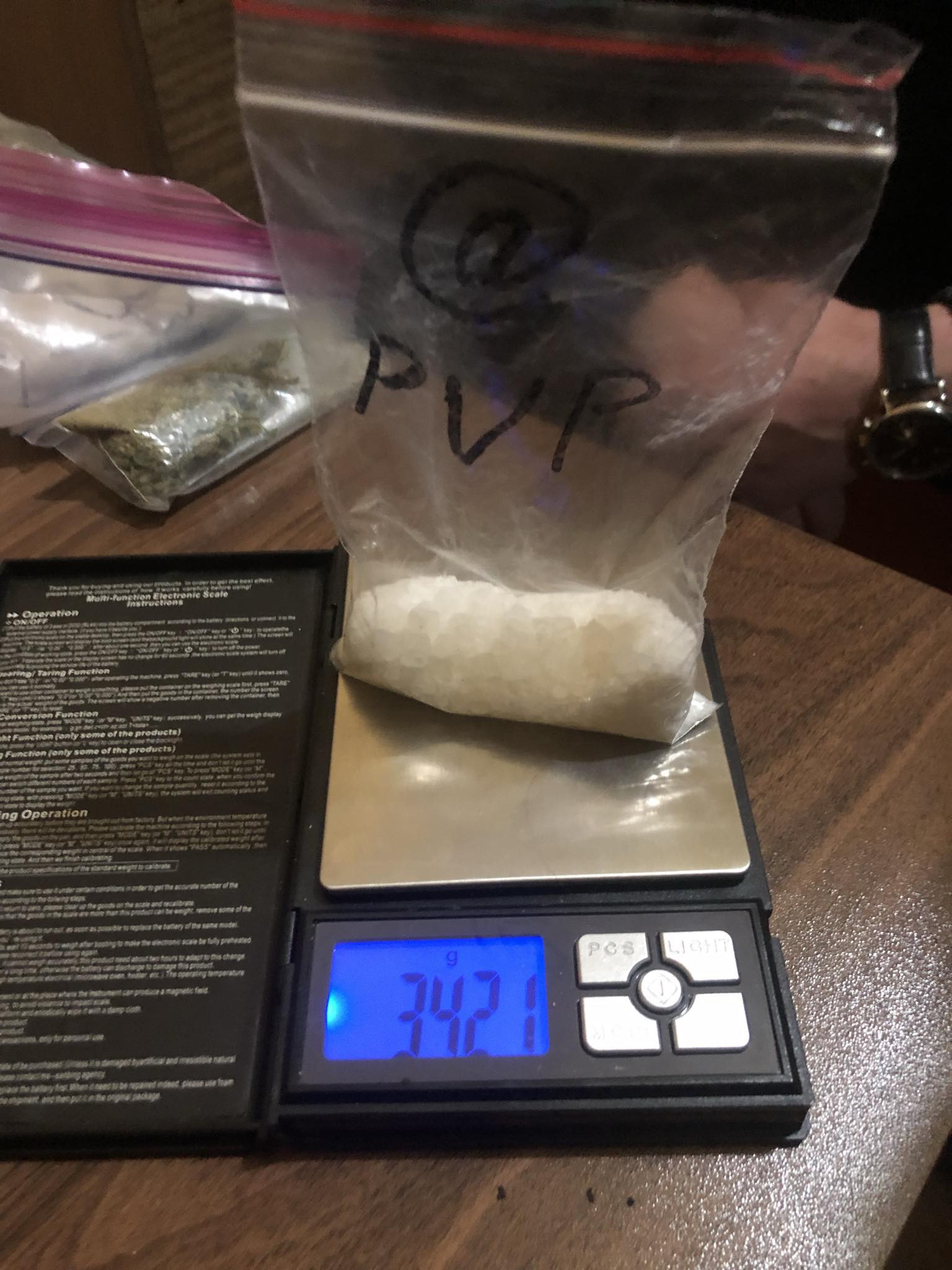 Drugs of the same type in particularly large amount - in different weights, as well as psychoactive substance of «Pregabalin» type were found in the apartment used as storage for the above-mentioned shopping platforms, V.G.’s factual residence, in the apartment owned by his parents and in R.B.’s apartment.
