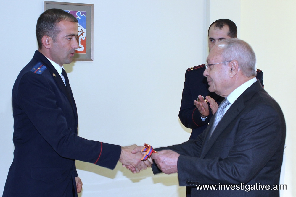 By the order of the Chairman of the RA Investigative Committee the Head of the RA IC Ararat Regional Investigative Department Gevorg Simonyan was awarded a medal “Best Investigator”, three investigators were awarded with monetary encouragement in the amount of one month’s salary, three more investigators were granted a title of captain of justice for conscientious performance of their duties.
