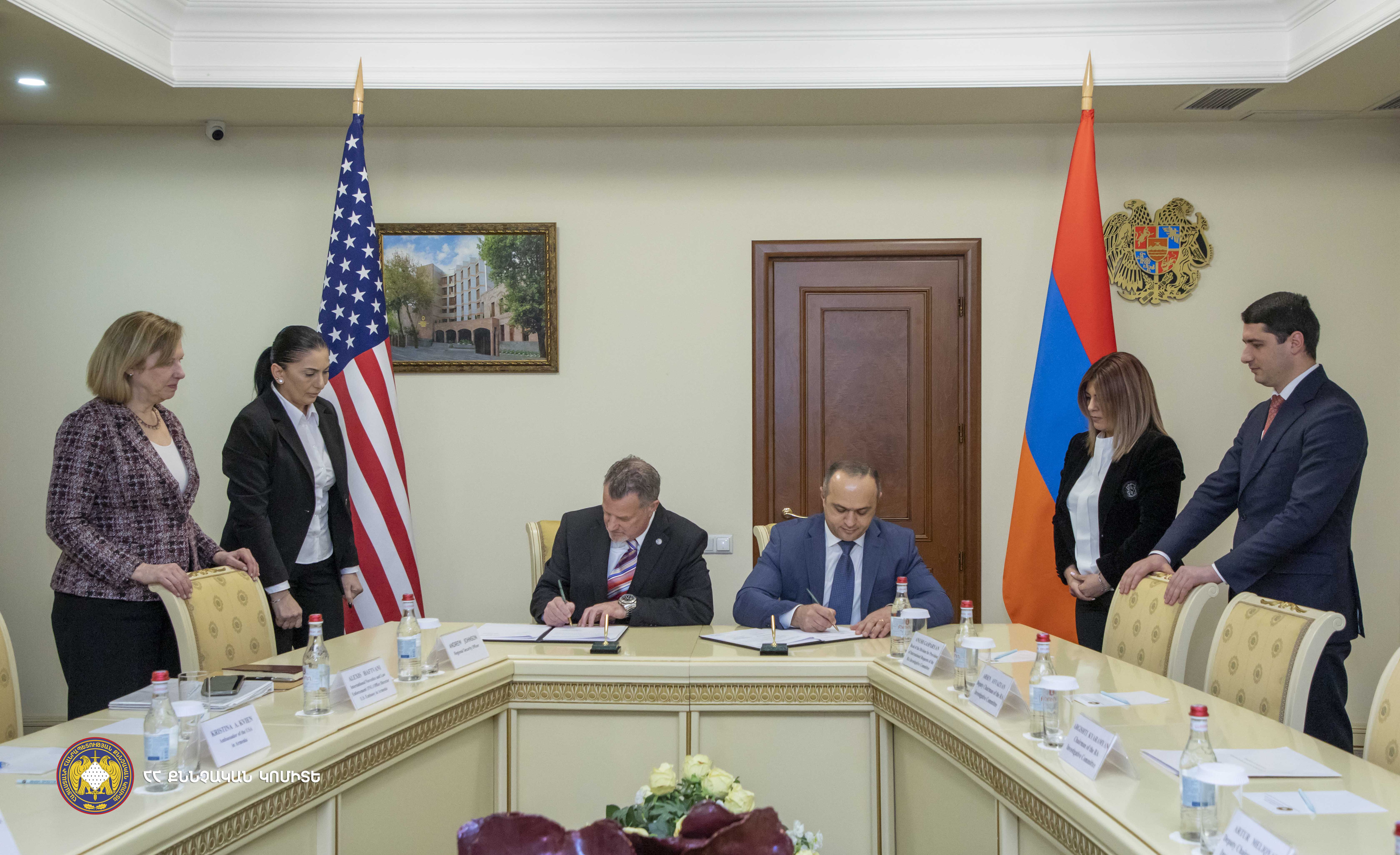 Argishti Kyaramyan, the Chairman of the RA Investigative Committee and Kristina Alison Kvien, Ambassador Extraordinary and Plenipotentiary of the United States to Armenia were present at the memorandum signing ceremony.