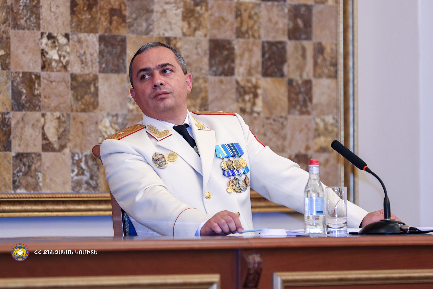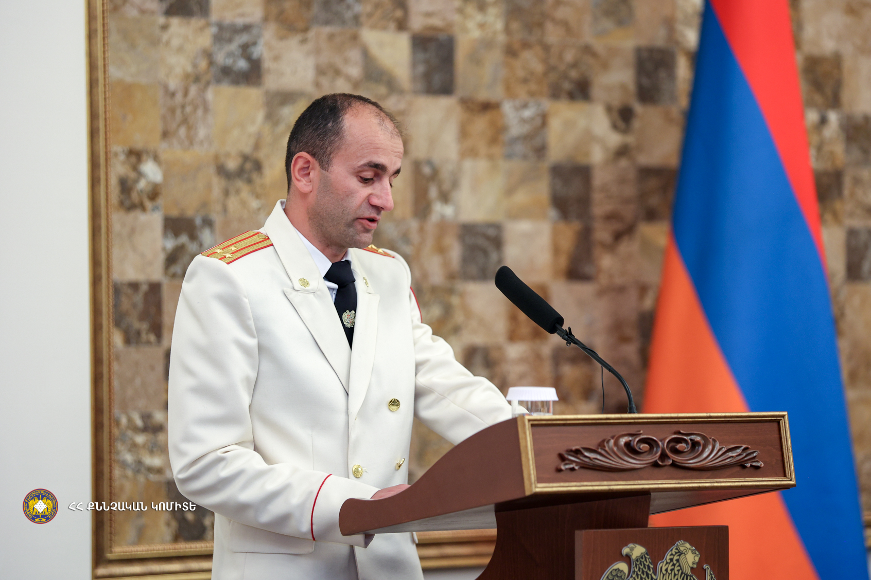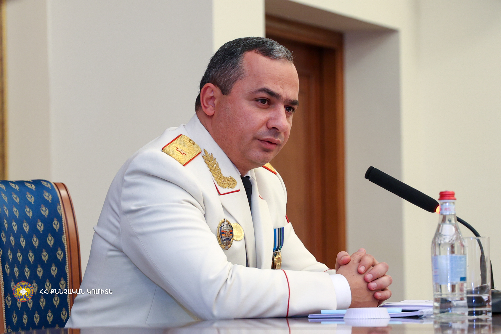 Մեծարգո Վարչապետ, հատուկ ցանկանում եմ ընդգծել ՀՀ կառավարության և անձամբ Ձեր անձնական ջանքերը՝ Քննչական կոմիտեի ծառայողների սոցիալական երաշխիքների բարձրացման, ինչպես նաև Կոմիտեի բնականոն գործունեության համար առկա կարիքներին մեծ հոգատարությամբ վերաբերվելու համար, որի շնորհիվ քննիչի պաշտոնն այսօր դարձել է առավել գրավիչ և պատվաբեր։ Դրա շնորհիվ հնարավոր է դարձել շարունակել կադրային բարեփոխումները, կատարելագործել առկա հնարավորությունները և զարգացնել առկա տեխնիկական հագեցվածությունը՝ պահպանելով համակարգի շարունակական զարգացումը և ժամանակի պահանջներին համահունչ կատարելագործելու հանցավորության դեմ պայքարում առկա հնարավորություններն ու մեթոդները, ինչի կապակցությամբ հայտնում եմ իմ շնորհակալությունը։