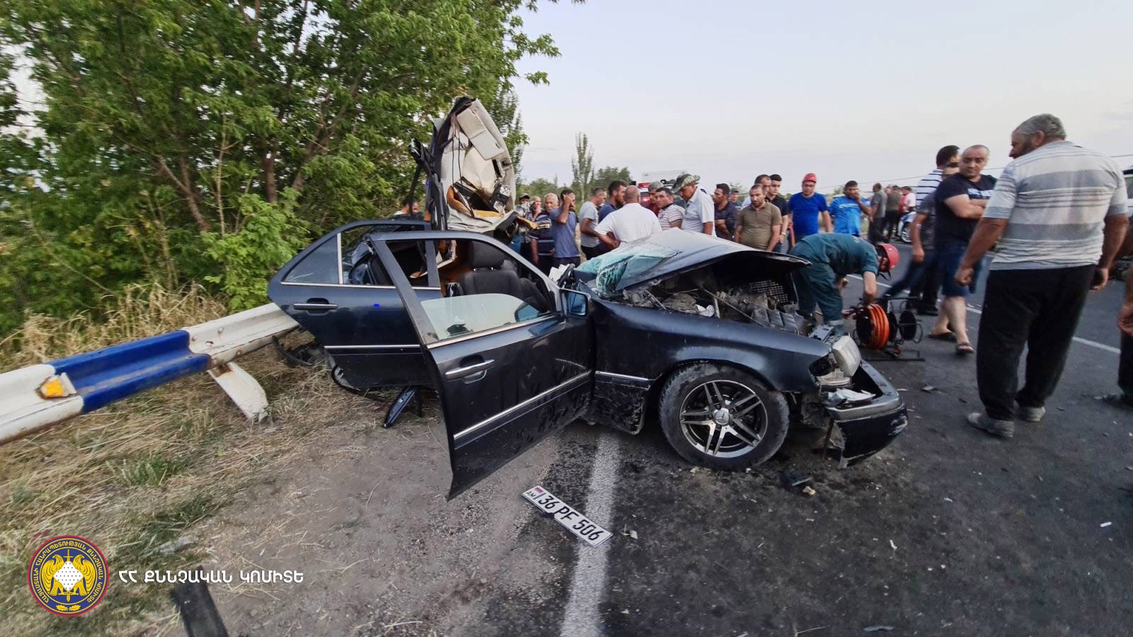 Կատարվել են դեպքի վայրի և տրանսպորտային միջոցների զննություններ. նախնական տվյալներով՝ բախումը տեղի է ունեցել «Mercedes Benz» մակնիշի ավտոմեքենայի ուղեգոտում։