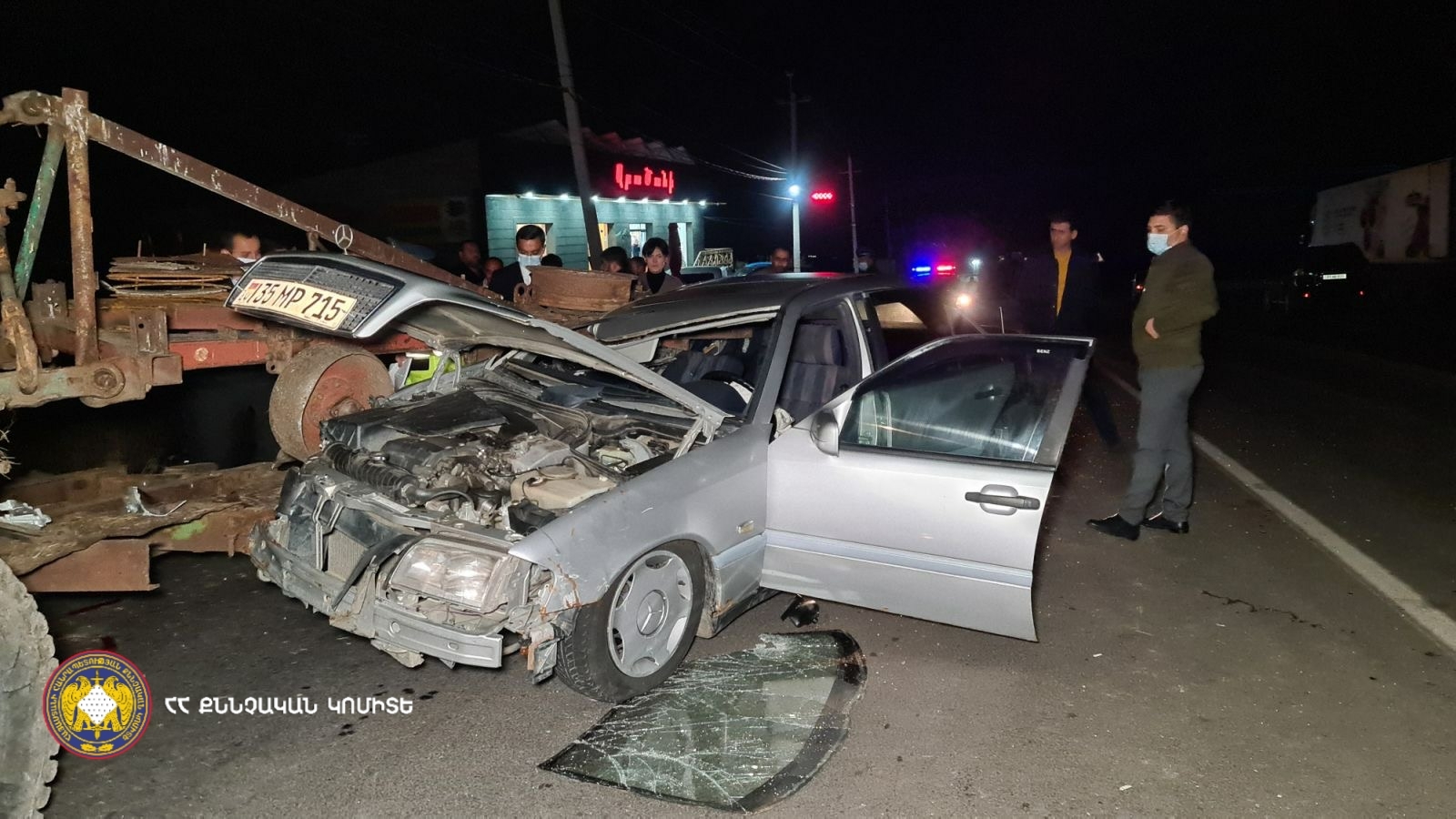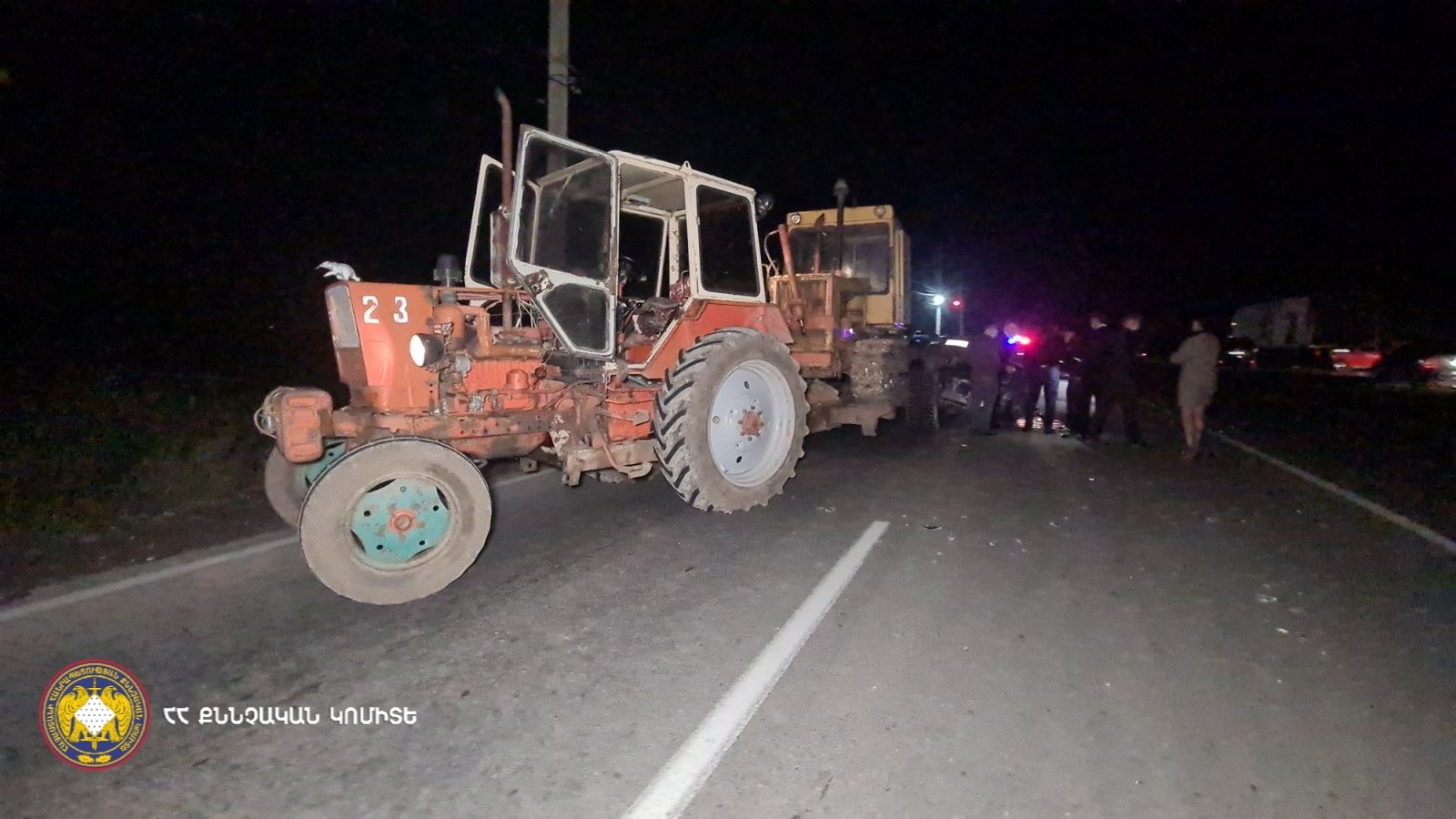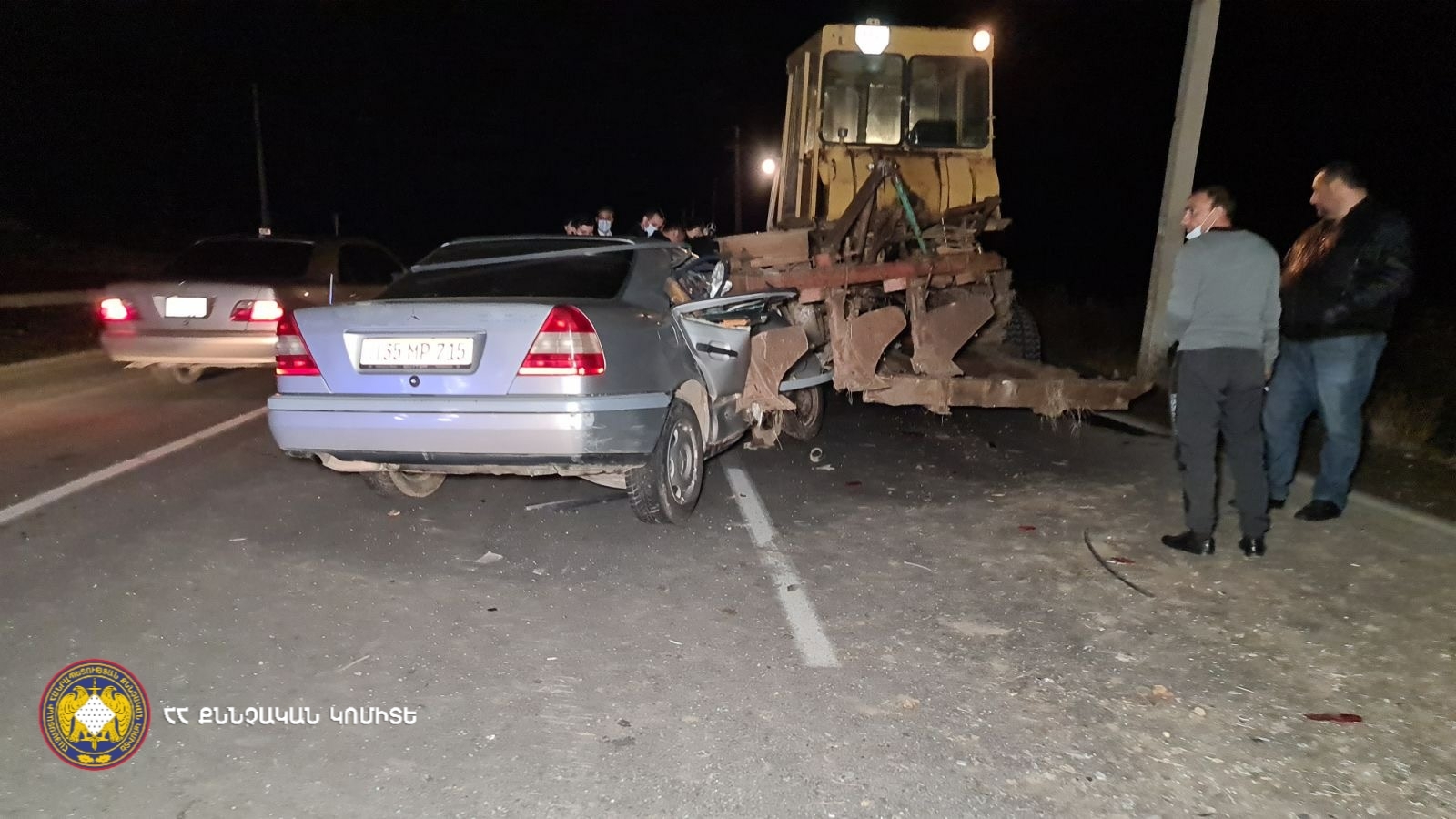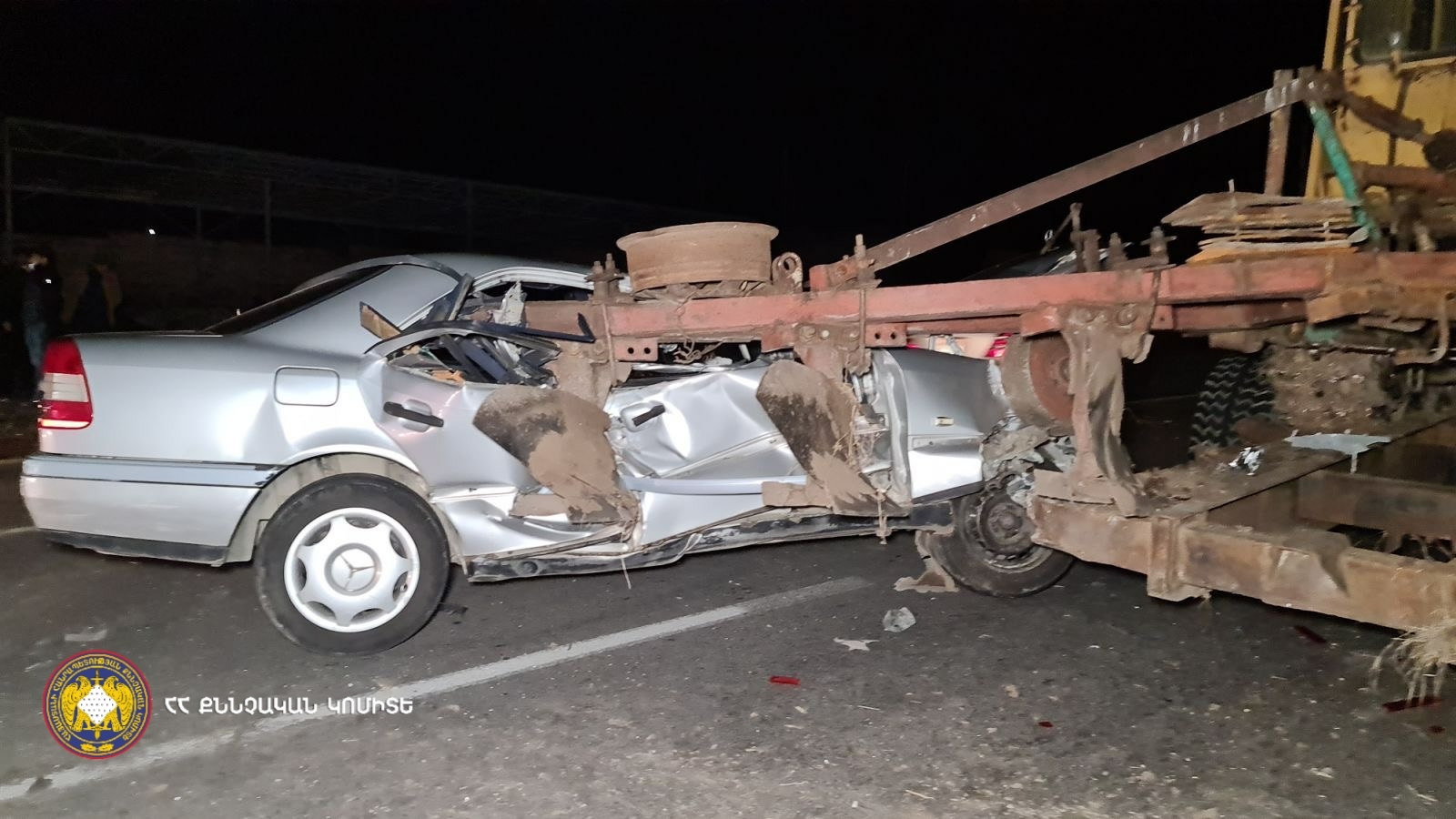 Ըստ նախնական տվյալների՝ Ապարան քաղաքի բնակիչն իր վարած «Մերսեդես» մակնիշի ավտոմեքենայով բախվել է համընթաց ընթացող «Յումզ» մակնիշի տրակտորի կցորդիչին բեռնված «ԴՏ» մակնիշի թրթուրավոր տրակտորի գութանին, ինչի հետևանքով նշված ավտոմեքենայի 25-ամյա ուղևորուհին և վերջինիս երեխան՝ ծնված 16.11.2019թ., ստացած մարմնական վնասվածքներից մահացել են հիվանդանոց տեղափոխվելու ճանապարհին: