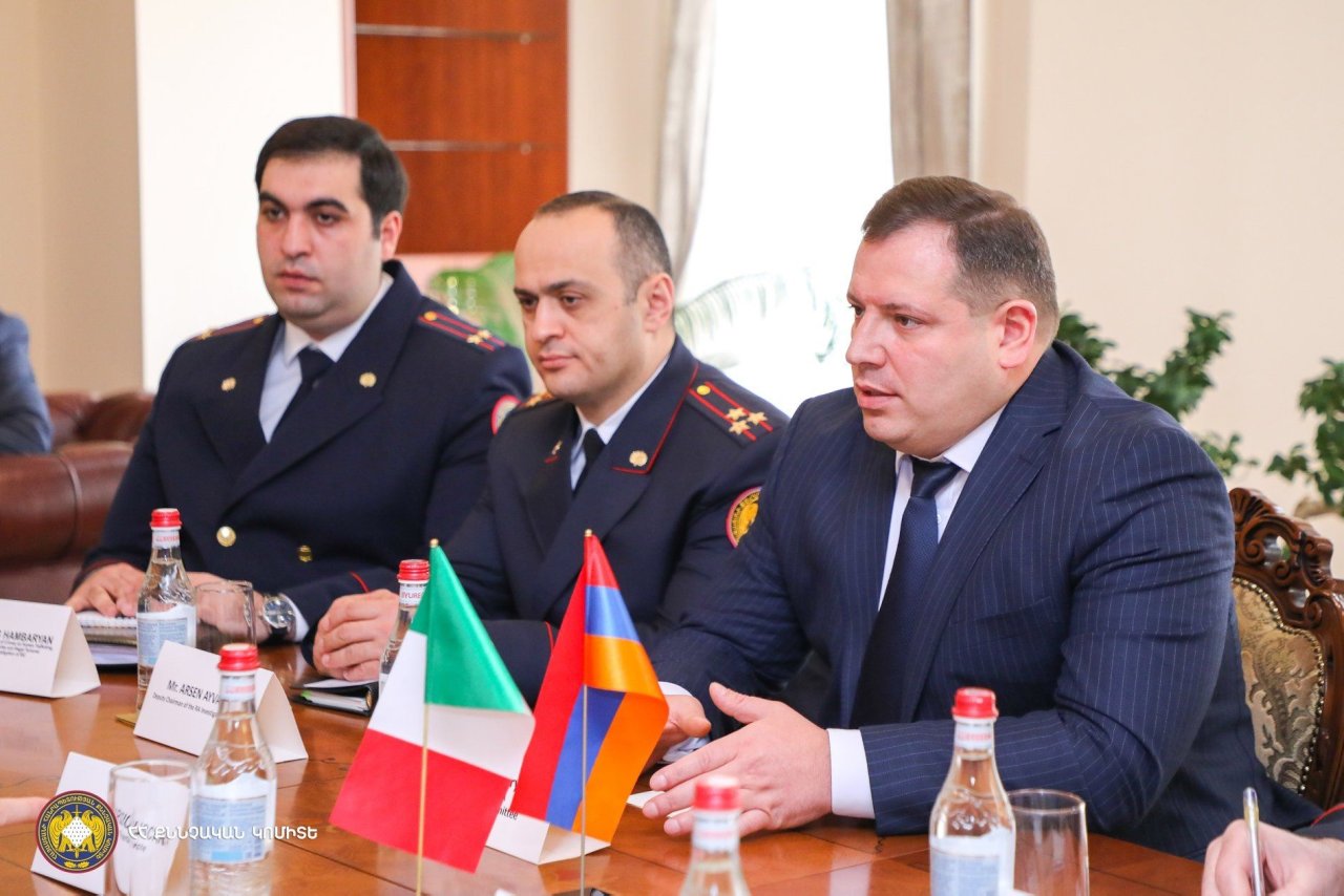 Հանդիպման ընթացքում քննարկվել են օտարերկրացիների կողմից Հայաստանի Հանրապետության քաղաքացի հանդիսացող երեխաների ապօրինի որդեգրման դեպքերի առթիվ ՀՀ ՔԿ ՀԿԳ վարչությունում հարուցված քրեական գործի շրջանակներում Իտալիայի Հանրապետության համապատասխան իրավապահ մարմինների հետ համատեղ փոխգործակցության և իրավական օգնության ցուցաբերմանը վերաբերող, ինչպես նաև՝ երկուստեք հետաքրքրություն ներկայացնող այլ հարցեր: