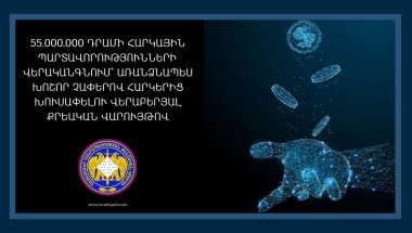 09.11.202355․000․000 դրամի հարկային պարտավորությունների վերականգնում՝ առանձնապես խոշոր չափերով հարկերից խուսափելու վերաբերյալ քրեական վարույթովԲացահայտվել է տնտեսվարող սուբյեկտի առանձնապես խոշոր չափերով հարկեր չվճարելու ևս մեկ դեպք։ -