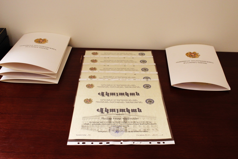 Վերապատրաստում անցած մասնագետներին ԵՊԲՀ ռեկտոր Արմեն Մուրադյանն այսօր հանձնեց վկայագրերը, ովքեր այսուհետ մարզերում կիրականացնեն նաև դատահոգեբուժական ամբուլատոր փորձաքննություններ։ «Համոզված եմ, որ արդյունքում հոգեբուժական փորձաքննությունների կատարման բնագավառում կարձանագրվեն դրական ցուցանիշներ՝ կատարման ժամկետների կրճատման և եզրակացությունների որակի մասով»,- ասաց Ա.Ղամբարյանը։