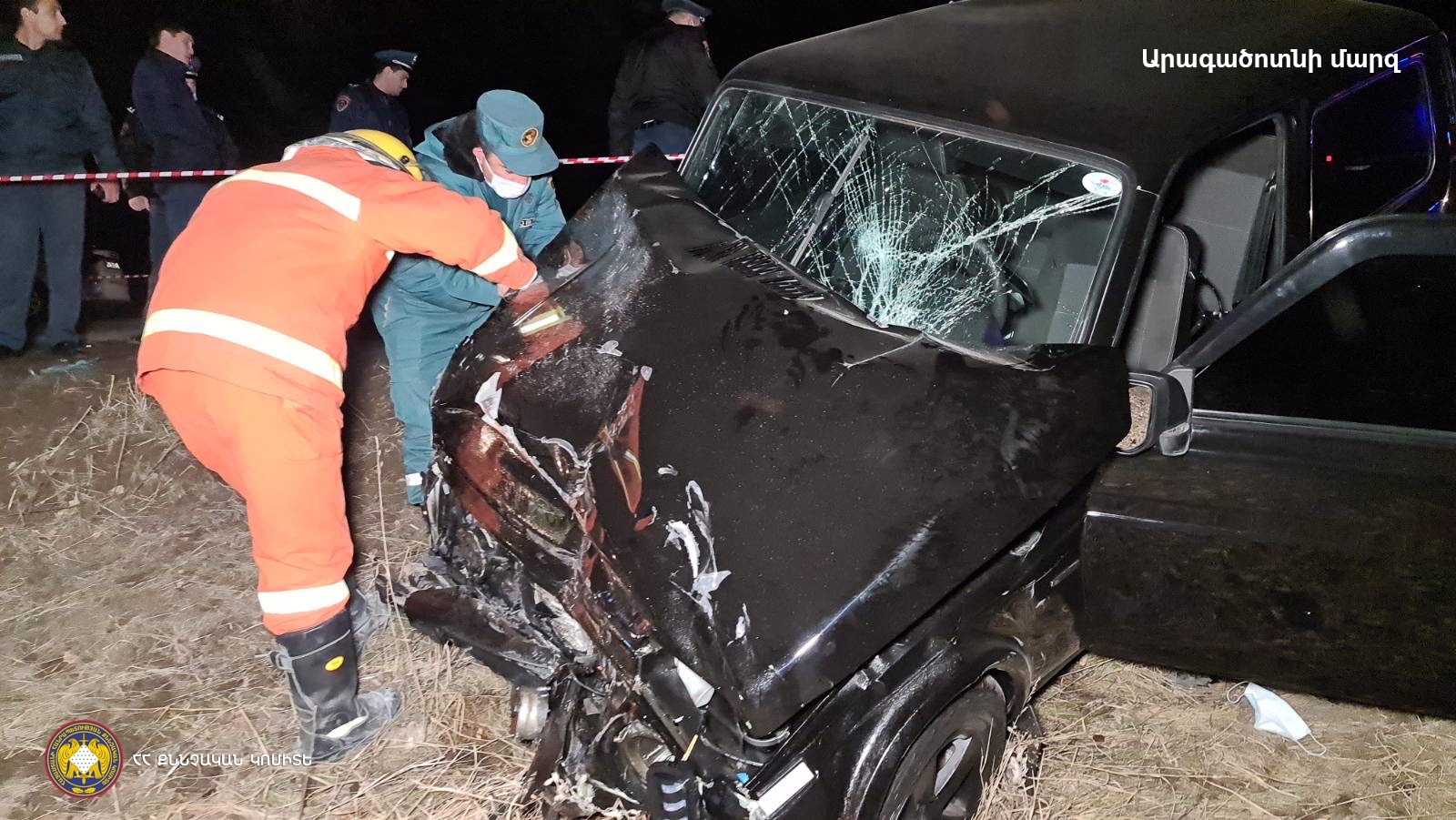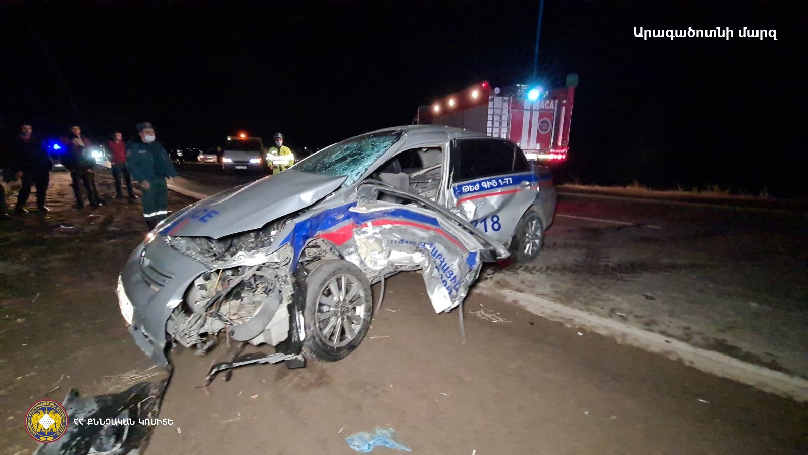 Ըստ նախնական տվյալների՝ հիշյալ վայրում միմյանց են բախվել Արագածոտնի մարզի 38-ամյա բնակչի «Վազ 2121» և ՀՀ ճանապարհային ոստիկանության ավագ տեսուչի վարած ծառայողական «Տոյոտա Կոռոլա» մակնիշի ավտոմեքենաները, որի հետևանքով վերջինիս վարորդ տեղում մահացել է, իսկ նրա ուղևորը և մյուս ավտոմեքենայի վարորդը ստացած մարմնական վնասվածքներով տեղափոխվել են բժշկական կենտրոն: