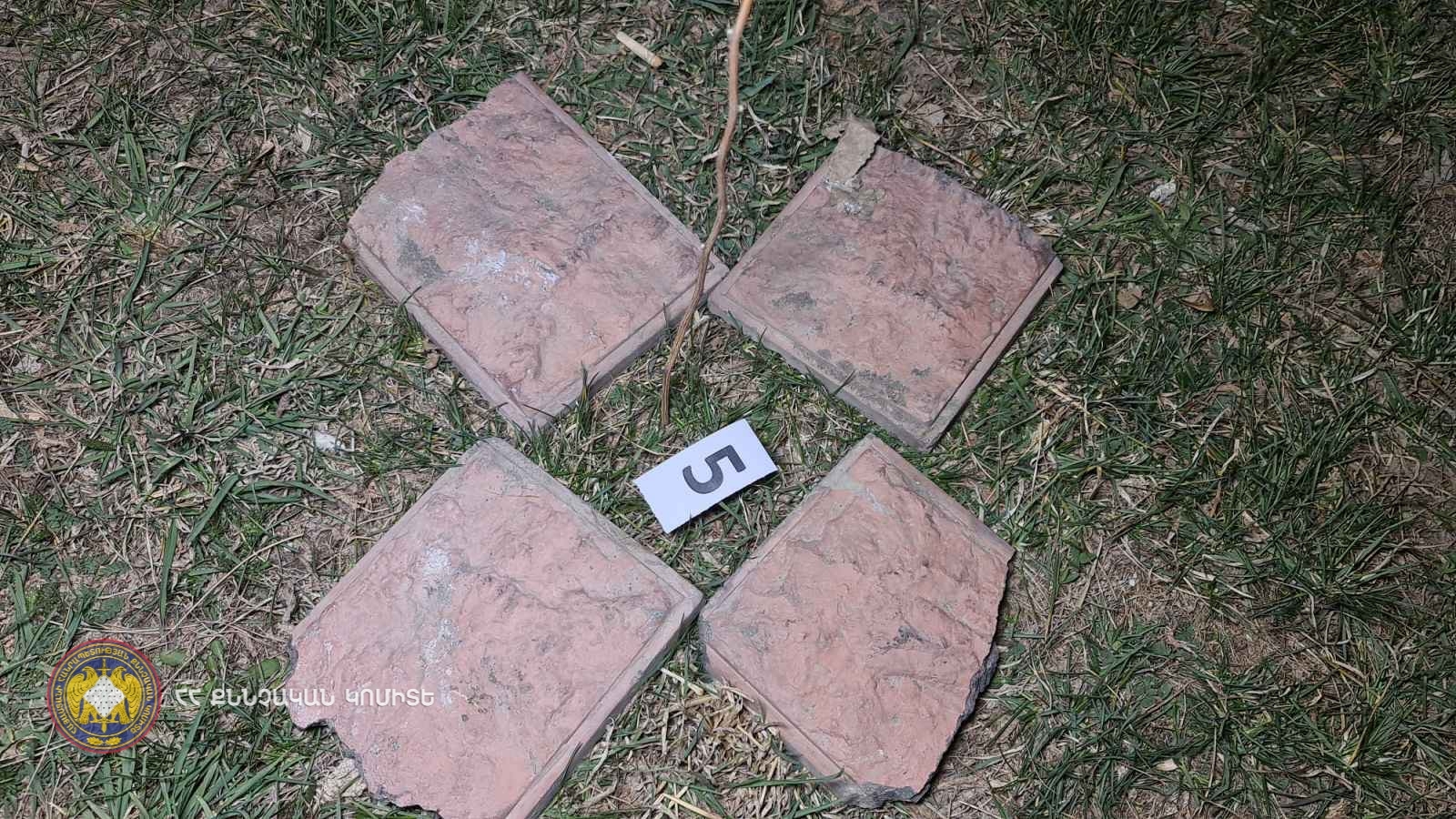 Ահազանգի հիման վրա իրականացված անհետաձգելի միջոցառումների արդյունքում տվյալներ են ձեռք բերվել այն մասին, որ վերջինս նշված վնասվածքներն ստացել է Արտաշատ քաղաքի Խարազյան փողոցի շենքերից մեկի բակի հարակից տարածքում, որտեղ իրականացված զննությամբ հայտնաբերվել են արնանման հետքեր, 9 մմ տրամաչափի պարկուճներ և գնդակ: