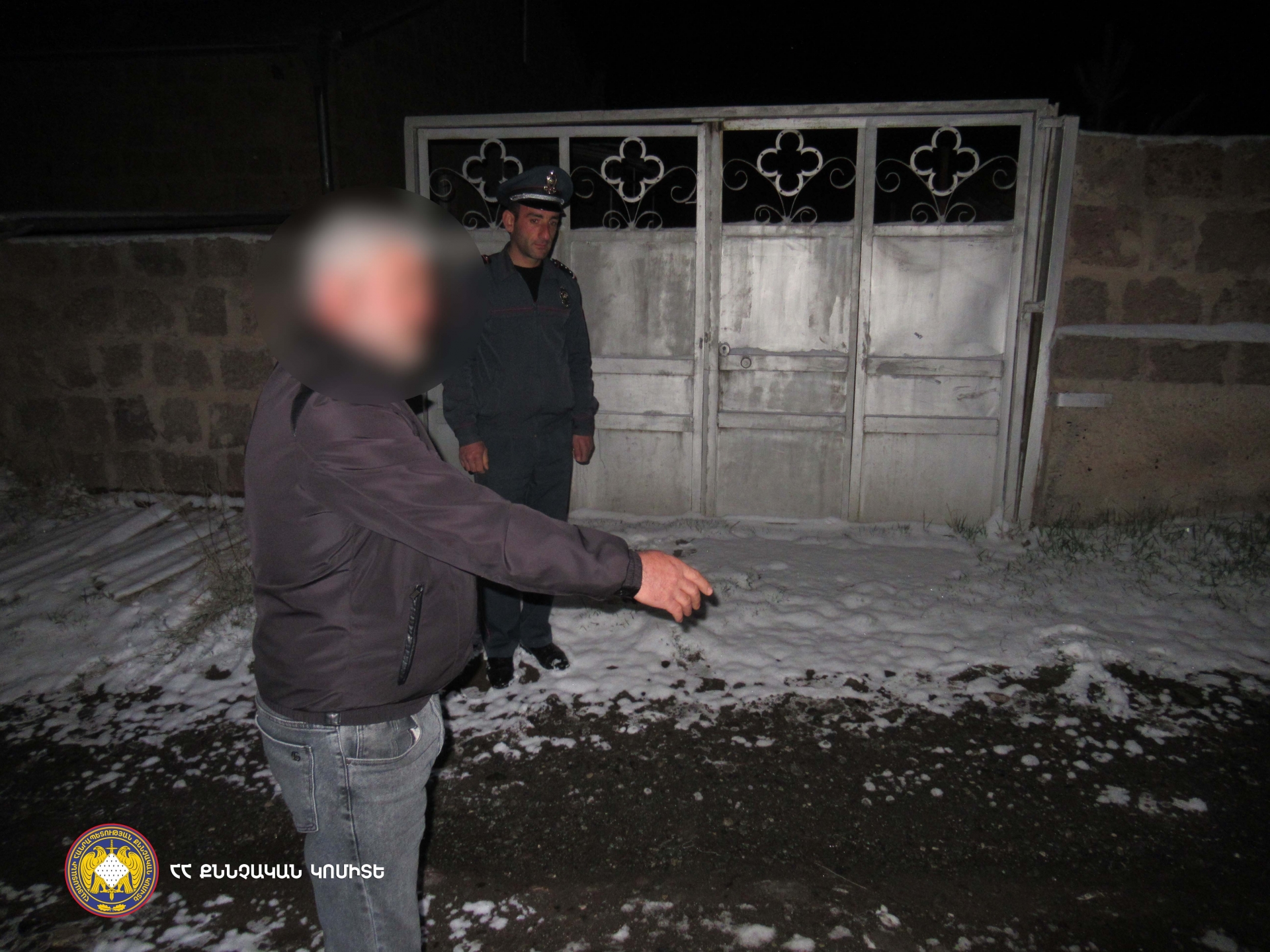 Նախաքննության ընթացքում կատարված դեպքի վայրի զննությամբ, հիշյալ 45-ամյա տղամարդը մատնացույց է արել վիճաբանության և հանցագործության գործիք հանդիսացող դանակի գտնվելու վայրը, որը հայտնաբերվել և վերցվել է, առգրավվել են հագուստներ: