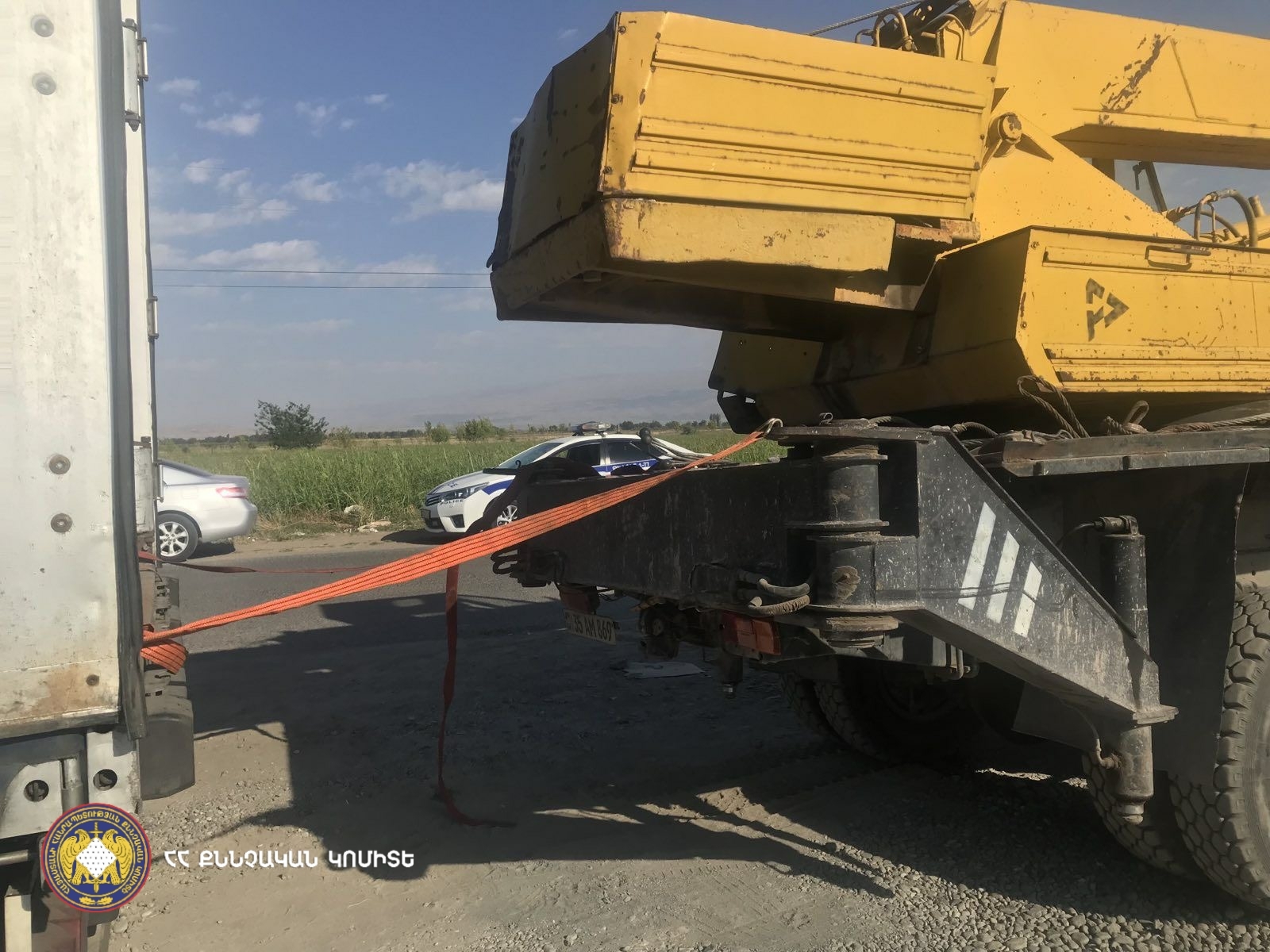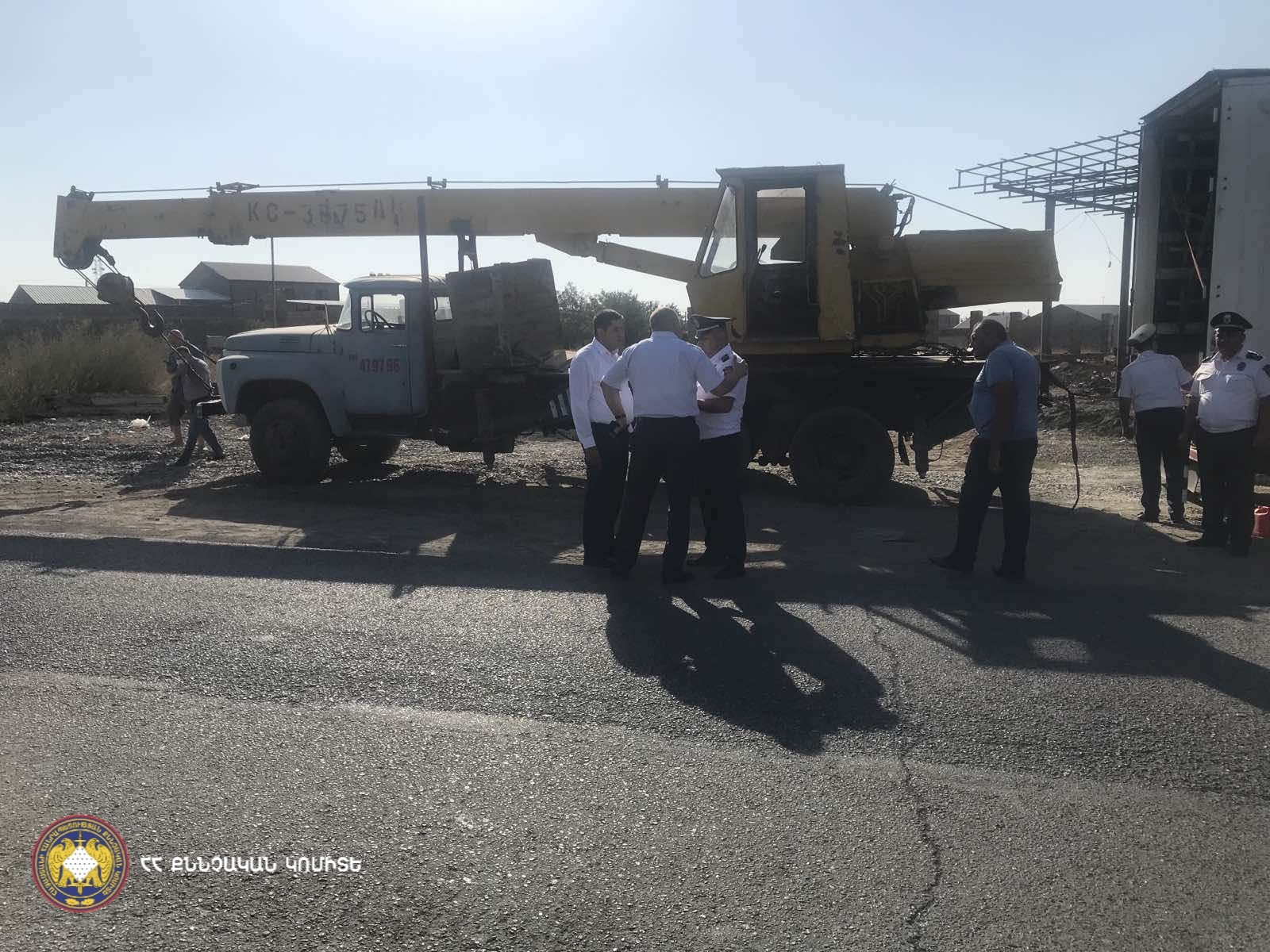 39-ամյա տղամարդը վերամբարձ կռունկ ավտոմեքենայով փորձել է հետընթաց կատարել և մոտենալ «Իվեկո» մակնիշի բեռնատար ավտոմեքենայի հետնամասին, որպեսզի կարողանա բեռնատարում գտնվող «Վոլվո» մակնիշի բեռնատար ավտոմեքենան իջեցնել և կայանել այդ հատվածում: Սակայն այդ ընթացքում «Իվեկո» բեռնատար ավտոմեքենայի վարորդը՝ Արարատի մարզի 65-ամյա բնակիչը, անսպասելի հայտնվել է կայանված բեռնատար և հետընթաց կատարող վերամբարձ կռունկ ավտոմեքենաների միջև, որի ժամանակ էլ վերամբարձ կռունկ ավտոմեքենայի վարորդը, չնկատելով վերջինիս՝ վրաերթի է ենթարկել: 65-ամյա տղամարդը, մնալով բեռնատար ավտոմեքենաների միջնամասում, ստացել է մարմնական վնասվածքներ և ժամը 08:10-ին տեղափոխվել բժշկական կենտրոն, որտեղ գիտակցության չգալով՝ մահացել է: