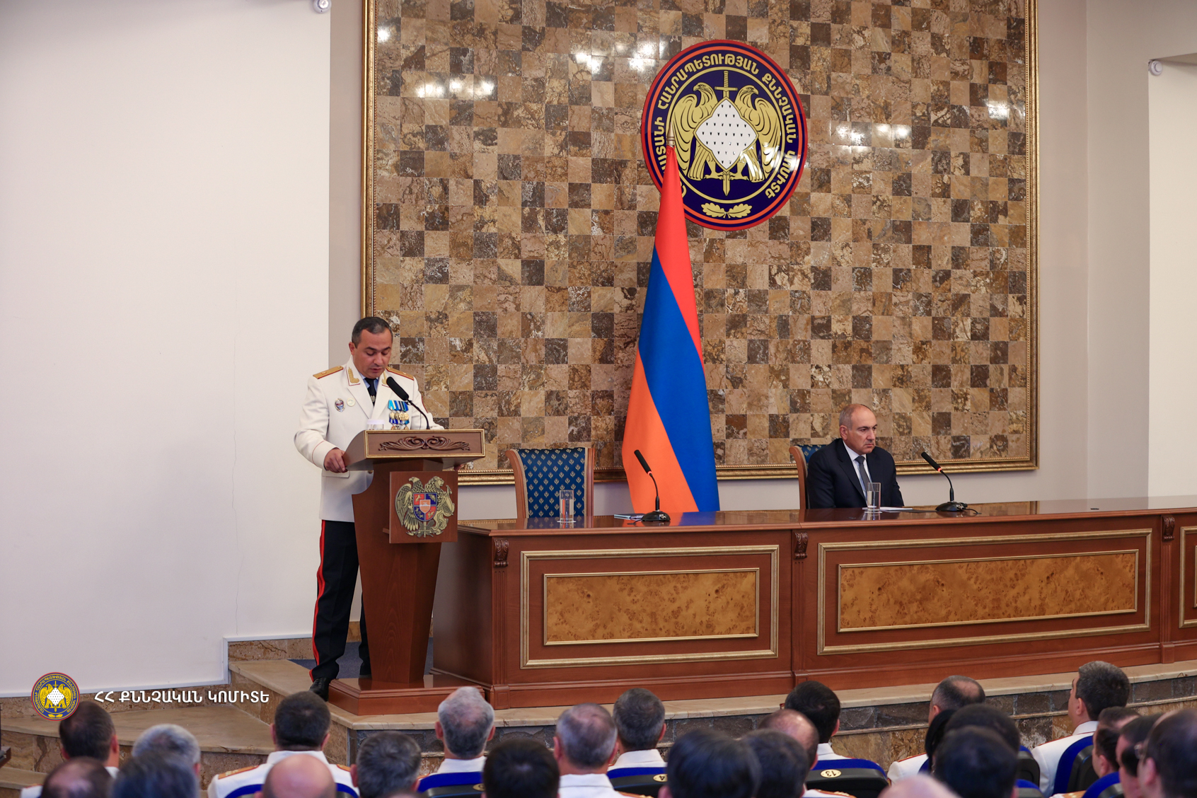 Многоуважаемый Премьер-министр, я особо хочу подчеркнуть личные усилия правительства Республики Армения и ваши личные усилия по повышению социальных гарантий сотрудников Следственного комитета, а также большую заботу к существующим потребностям для нормальной деятельности Комитета, благодаря чему должность следователя сегодня стала более привлекательной и почетной. Благодаря этому стало возможным продолжить кадровую реформу, улучшить существующие возможности и развить существующее техническое оснащение, поддерживая непрерывное развитие системы и совершенствуя имеющиеся возможности и методы борьбы с преступностью в соответствии с требованиями времени, за что я выражаю свою благодарность.