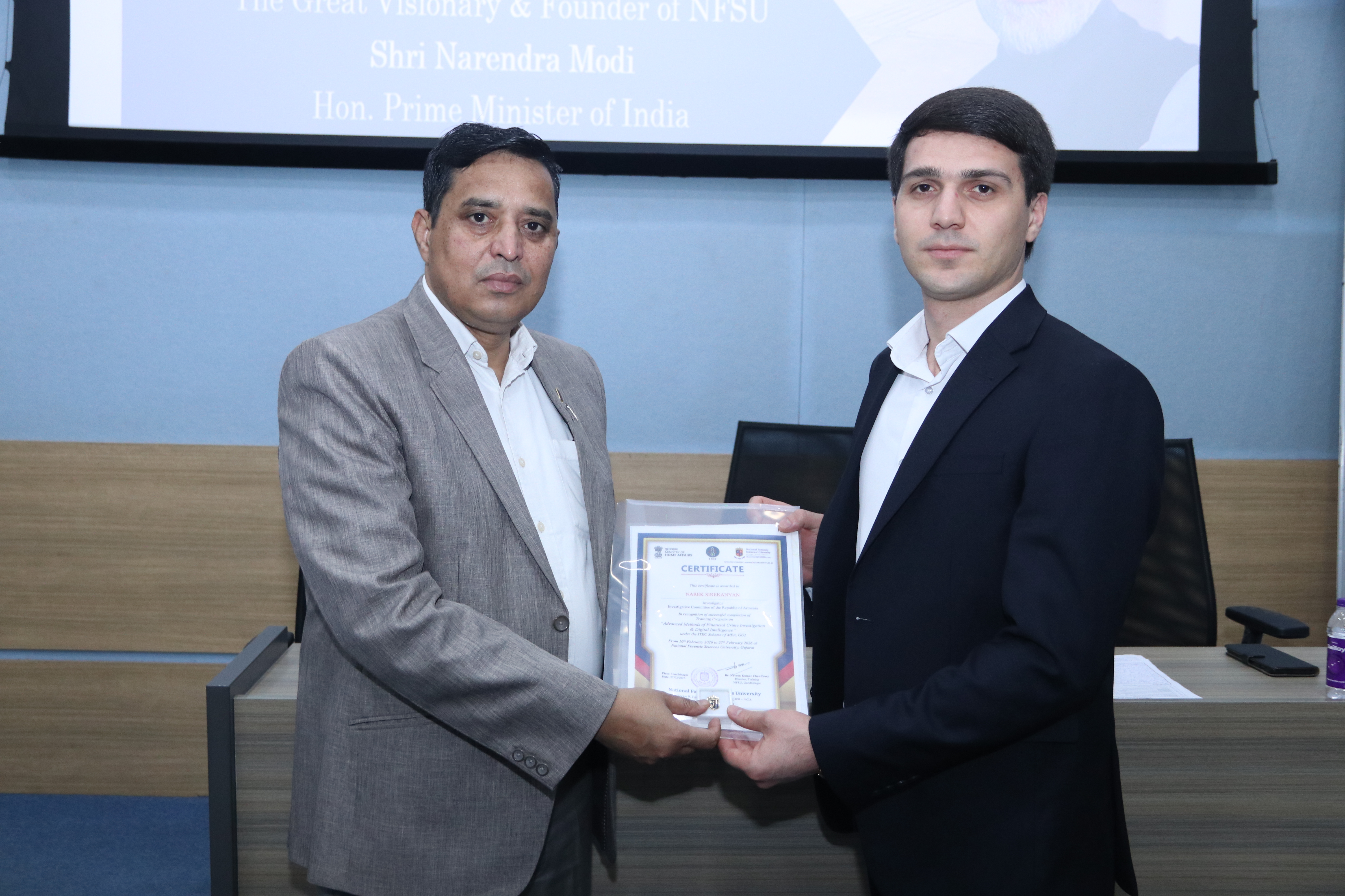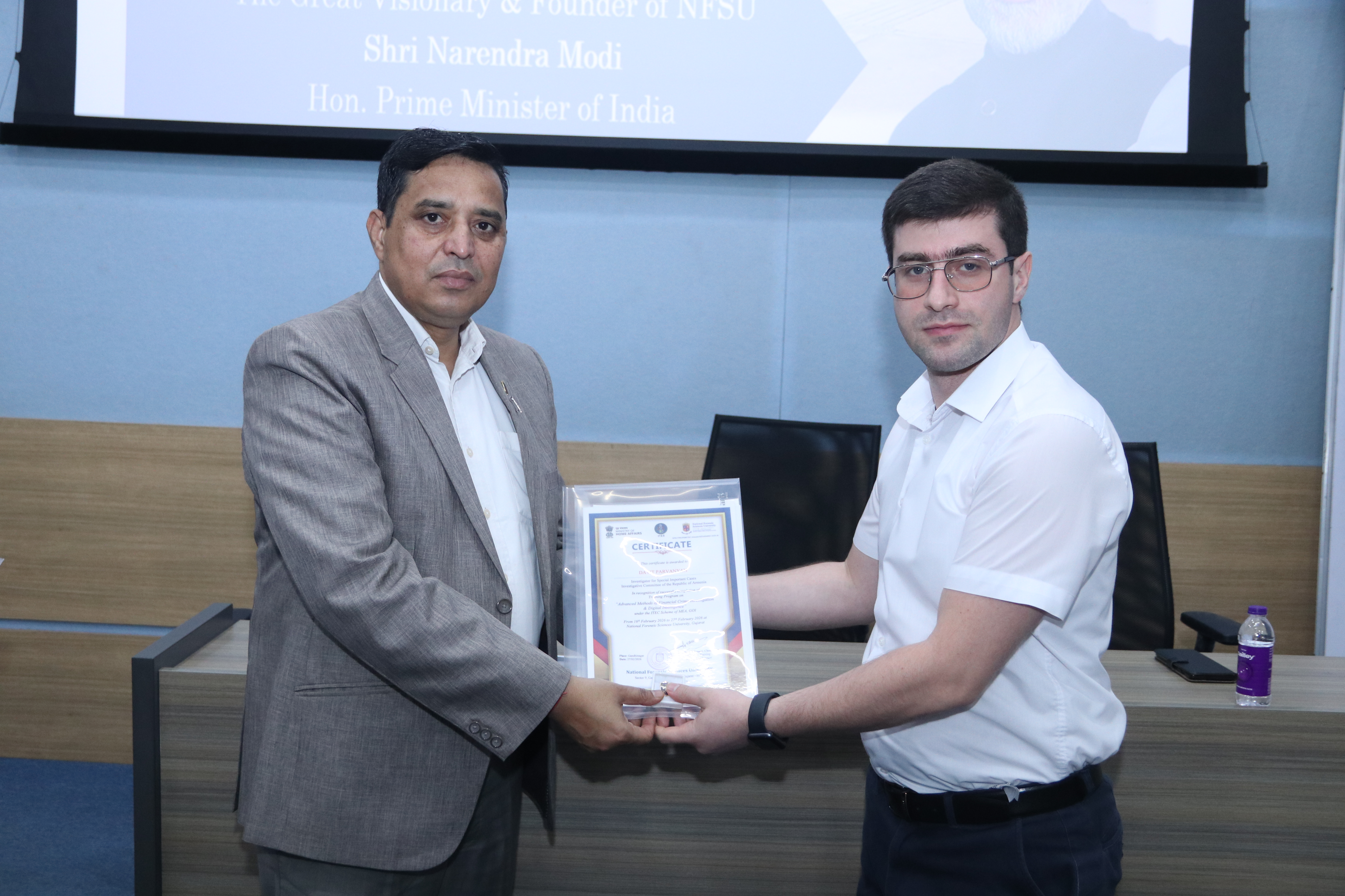 На встрече также присутствовали 15 следователей Следственного комитета, которые 16-27 февраля 2026 года в рамках Программы индийского технического и экономического сотрудничества (ITEC) в Национальном университете судебных наук в городе Гандинагар штата Гуджарат, приняли участие в курсе на тему «Борьба с отмыванием денег, цифровая разведка и криптовалюта».