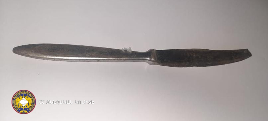 В ходе следственного эксперимента, проведенного с участием 59-летнего жителя города Гюмри, был обнаружен нож, являющийся орудием преступления.