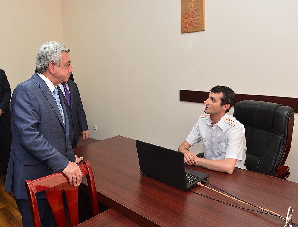 Президент РА Серж Саргсян присутствовал на церемонии открытия нового административного здания следственного управления Следственного комитета РА по городу Ереван. Президент Республики в сопровождении председателя СК РА Агвана Овсепяна обошел здание, побывал в кабинетах, побеседовал с сотрудниками, ознакомился с созданными для деятельности Следственного комитета условиями.