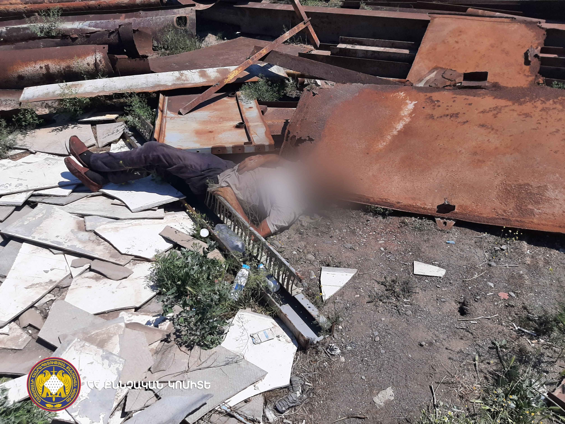 Следственно-оперативная группа, оперативно выехавшая на место происшествия – посередине железных отходов, находящихся у остановки на перекрестке Чобанкара города Эчмиадзин, обнаружила тело мужчины со следами насильственной смерти.