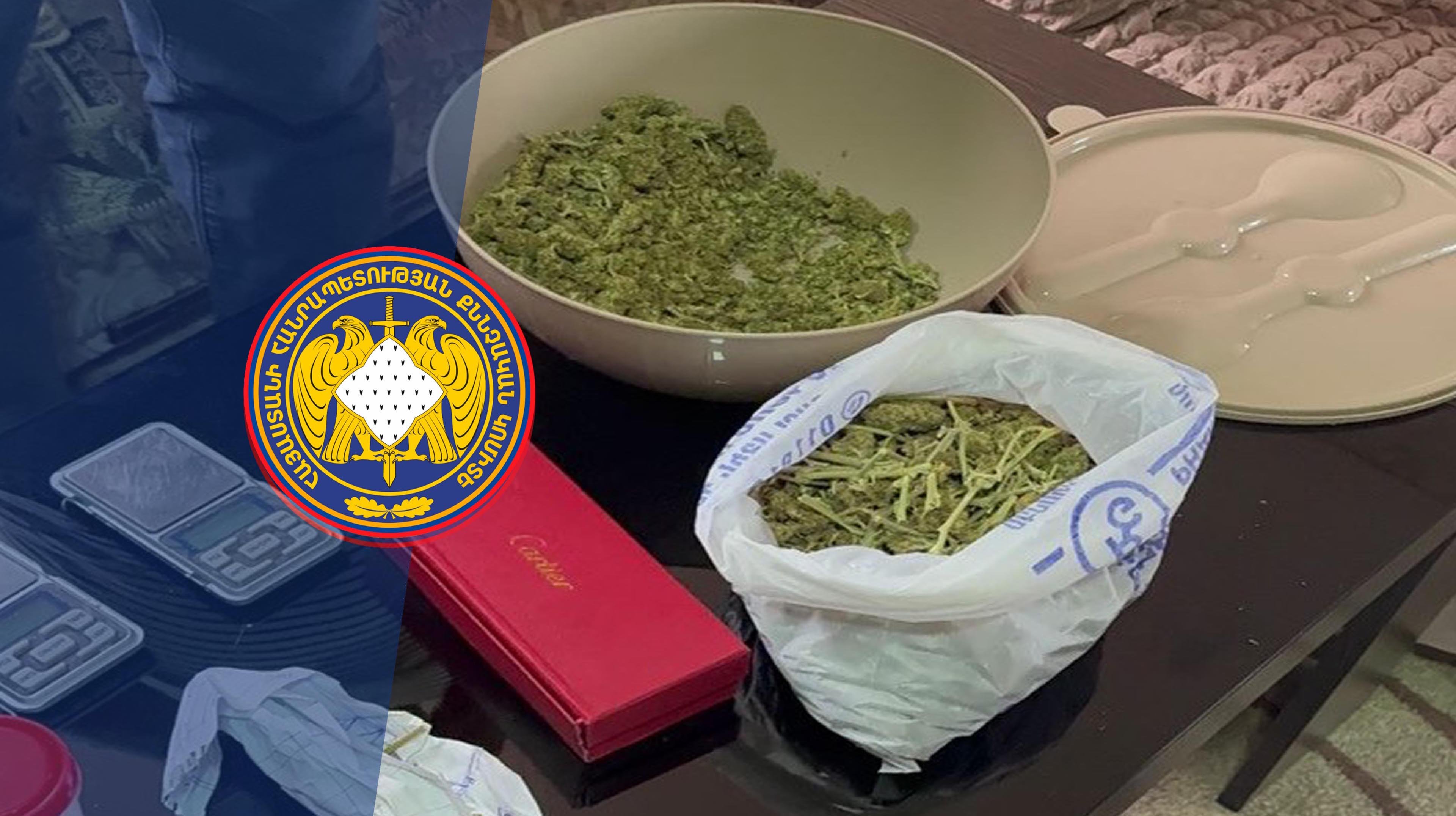 В ходе предварительного следствия в установленном законом порядке по месту жительства подозреваемого был проведен обыск, в ходе которого было обнаружено наркотическое средство в особо крупных размерах около 25 граммов «Метамфетамин» и около 600 г. “мариухана”, электронные весы, а также различные аксессуары для продажи наркотиков. 18 июля 2024 года с перекрестка улиц Аршакуняц и Агатангехос города Ереван С.К., по подозрению в незаконном хранении и сбыте наркотиков, был задержан и доставлен в Отдел полиции Кентронакан. При личном обыске у последнего была обнаружена масса весом 92,7 грамма, похожая на наркотик «марихуана» со специфическим запахом желто-зеленоватого цвета. Была назначена судебно-медицинская экспертиза. По факту во Втором следственном отделе административных районов Кентрон и Норк-Мараш Следственного комитета РА инициировано уголовное производство по пункту 2 части 3 статьи 393 Уголовного кодекса РА. Было принято постановления о соединении инициированных уголовных производство и продолжении предварительного следствия в одном производстве.