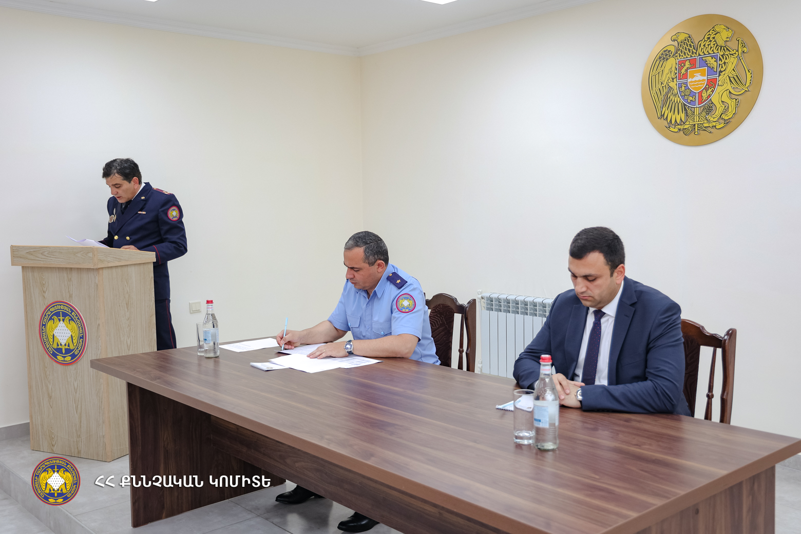 Argishti Mekhakyan, Governor of Armavir, Ashot Zhamkochyan, Deputy Head of General Department for Control over Activity of Territorial Investigative Departments, Arman Galstyan, Head of General Department on Special Assignments, Hrachya Ghazaryan, Head of Armavir Regional Investigative Department, Vahan Sargsyan, Prosecutor of the region, heads of regional structures of the Ministry of Internal Affairs, National Security Service, investigators of the regional investigative department were present at the meeting held in Armavir Regional Investigative Department.