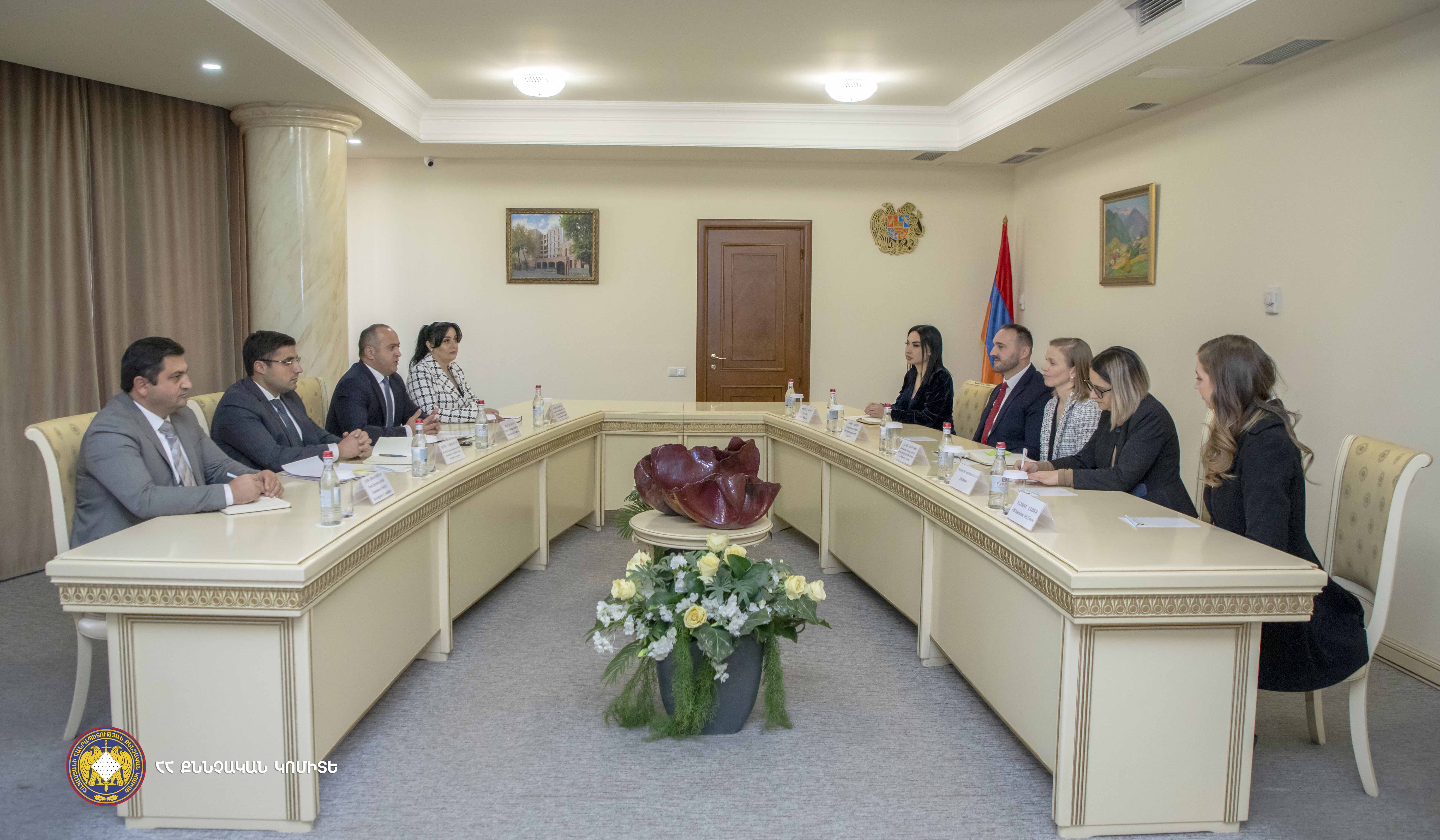 The Deputy Chairman of the RA Investigative Committee Arsen Ayvazyan received today the delegation headed by Alexis Haftvan, Director of the Bureau of International Narcotics and Law Enforcement Affairs (INL) of the US Embassy to Armenia.