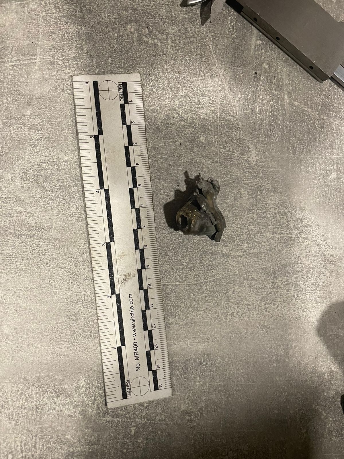 Կատարված զննությամբ հայտնաբերվել և վերցվել է արտաքինից խոշոր տրամաչափի հրազենային զինատեսակից կրակված գնդակին նմանվող առարկա: