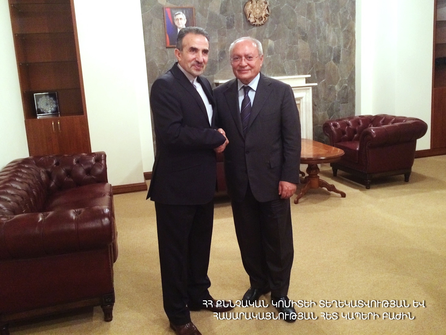 ՀՀ քննչական կոմիտեի նախագահ Աղվան Հովսեփյանն այսօր ընդունել է Հայաստանի Հանրապետությունում Իրանի Իսլամական Հանրապետության արտակարգ և լիազոր դեսպան Ն.Գ. Մոհհամադ Ռեիսիին, ով ավարտում է դիվանագիտական առաքելությունը մեր երկրում։