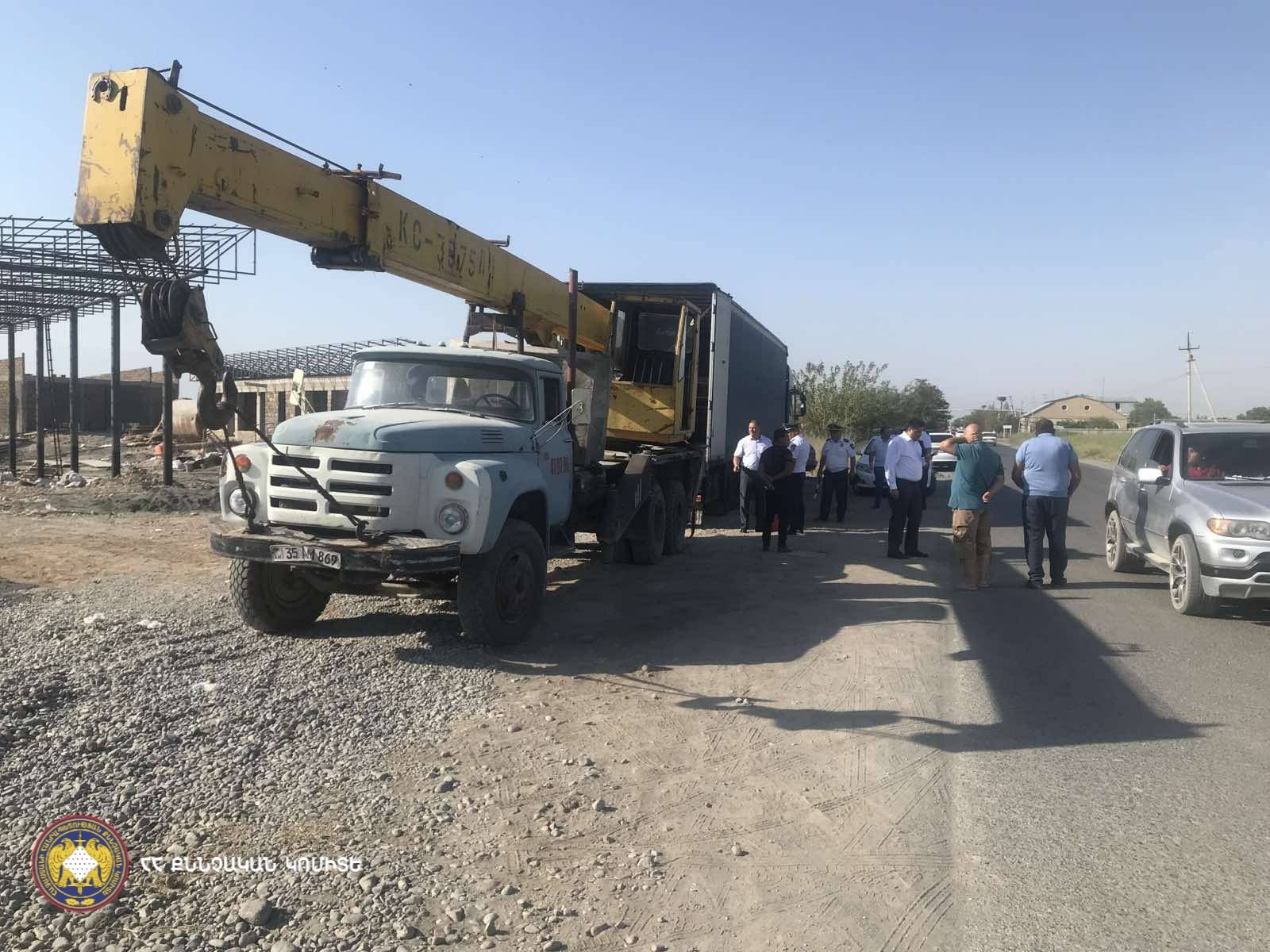39-ամյա տղամարդը վերամբարձ կռունկ ավտոմեքենայով փորձել է հետընթաց կատարել և մոտենալ «Իվեկո» մակնիշի բեռնատար ավտոմեքենայի հետնամասին, որպեսզի կարողանա բեռնատարում գտնվող «Վոլվո» մակնիշի բեռնատար ավտոմեքենան իջեցնել և կայանել այդ հատվածում: Սակայն այդ ընթացքում «Իվեկո» բեռնատար ավտոմեքենայի վարորդը՝ Արարատի մարզի 65-ամյա բնակիչը, անսպասելի հայտնվել է կայանված բեռնատար և հետընթաց կատարող վերամբարձ կռունկ ավտոմեքենաների միջև, որի ժամանակ էլ վերամբարձ կռունկ ավտոմեքենայի վարորդը, չնկատելով վերջինիս՝ վրաերթի է ենթարկել: 65-ամյա տղամարդը, մնալով բեռնատար ավտոմեքենաների միջնամասում, ստացել է մարմնական վնասվածքներ և ժամը 08:10-ին տեղափոխվել բժշկական կենտրոն, որտեղ գիտակցության չգալով՝ մահացել է: