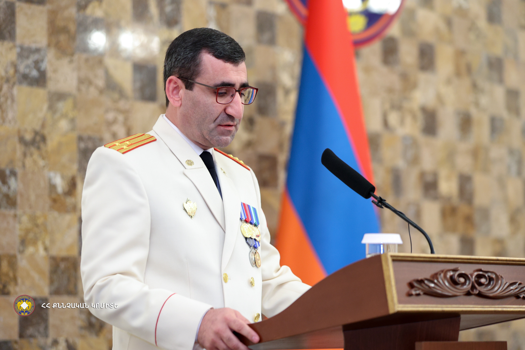 Многоуважаемый Премьер-министр, я особо хочу подчеркнуть личные усилия правительства Республики Армения и ваши личные усилия по повышению социальных гарантий сотрудников Следственного комитета, а также большую заботу к существующим потребностям для нормальной деятельности Комитета, благодаря чему должность следователя сегодня стала более привлекательной и почетной. Благодаря этому стало возможным продолжить кадровую реформу, улучшить существующие возможности и развить существующее техническое оснащение, поддерживая непрерывное развитие системы и совершенствуя имеющиеся возможности и методы борьбы с преступностью в соответствии с требованиями времени, за что я выражаю свою благодарность.