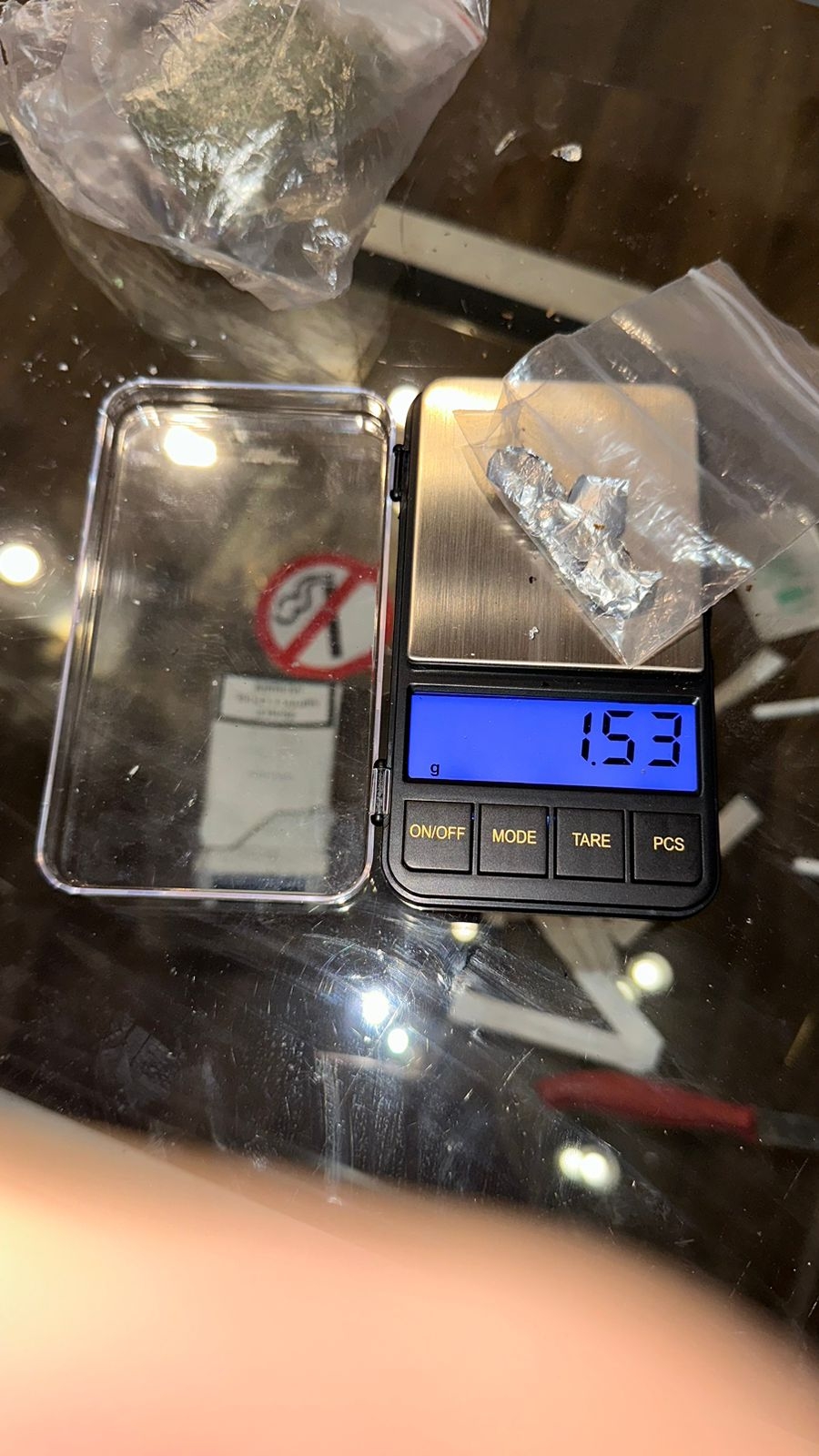 При личном обыске мужчины были обнаружены 6 пакетов с массой, похожей на “метамфетамин” и “марихуану”.