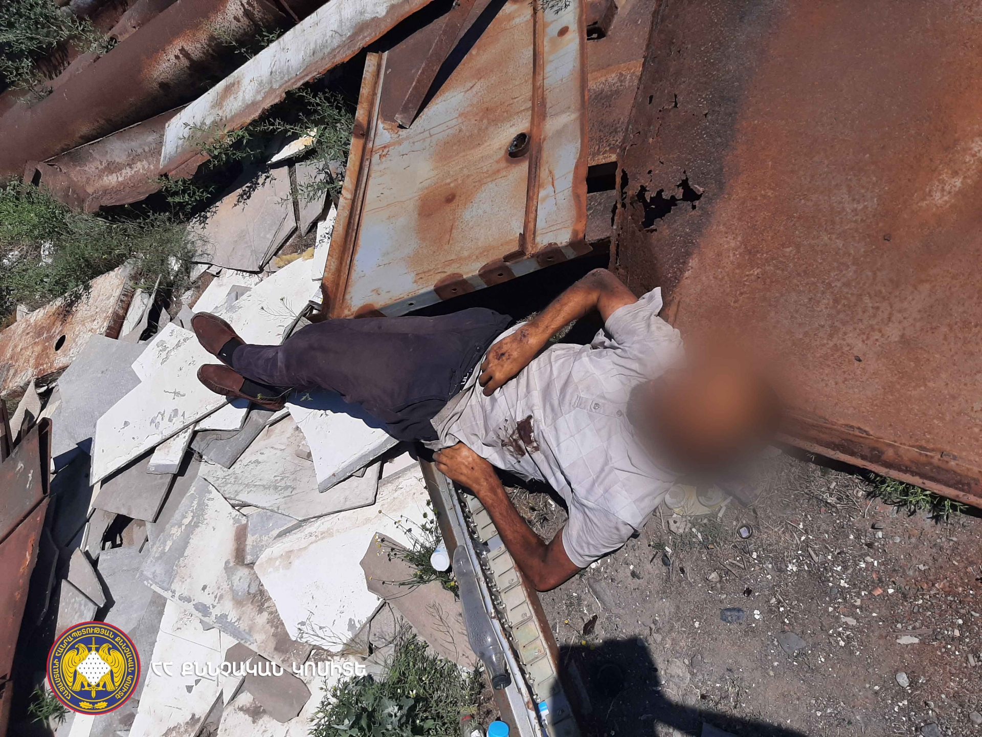 Следственно-оперативная группа, оперативно выехавшая на место происшествия – посередине железных отходов, находящихся у остановки на перекрестке Чобанкара города Эчмиадзин, обнаружила тело мужчины со следами насильственной смерти.